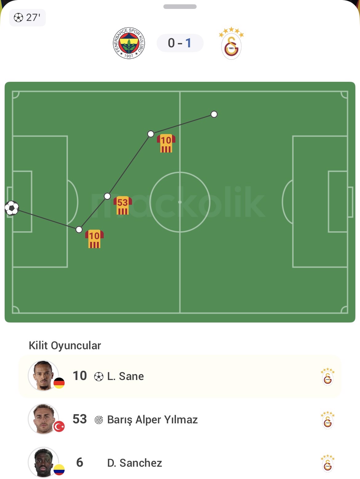 Fenerbahçe ile oynanan derbide takımını öne geçiren golü kaydeden Leroy Sane, Torsten Gütschow'un ardından Galatasaray formasıyla Süper Lig'de sarı-lacivertli ekibe karşı fileleri havalandıran ikinci Alman futbolcu oldu.