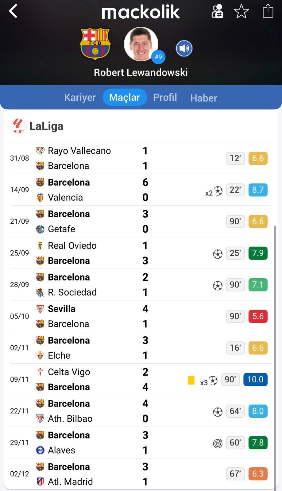 Kaçırılan penaltıdan sonra İspanyol devi, ikinci yarıda bulduğu gollerle maçı 3-1 kazanarak zirvedeki yerini 4 puana çıkardı. LaLiga'da 12 maçta 8 gole ulaşan Lewandowski, gol krallığı yarışındaki iddiasını sürdürdü.