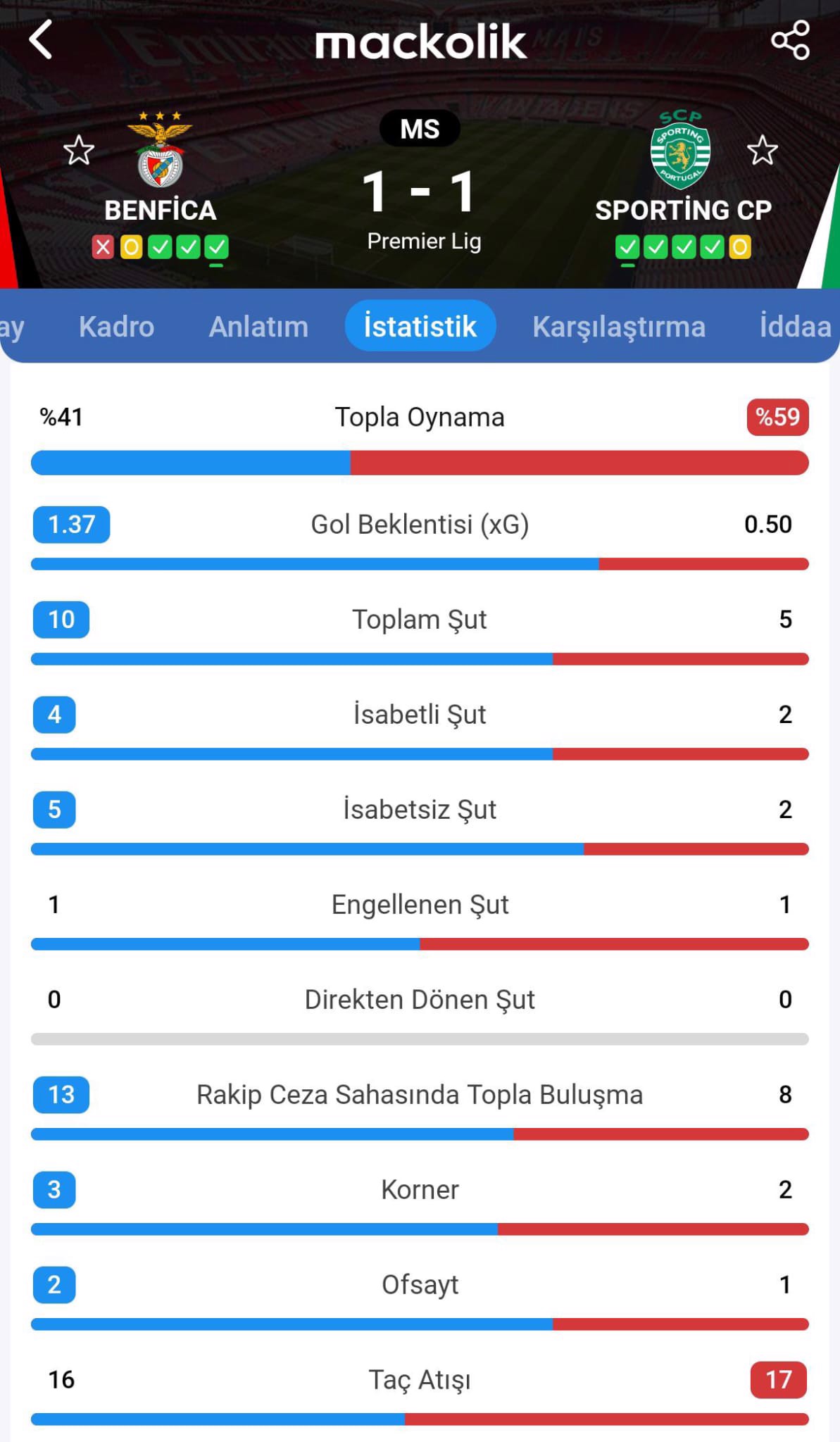 Sporting, Porto'yla olan maçında yenilmiş, Benfica ise rakibiyle golsüz berabere kalmıştı.