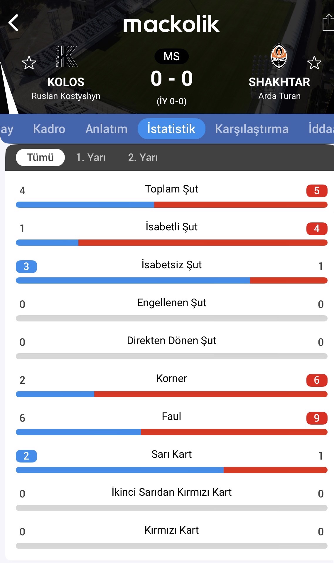 Maçtan istatistikler
