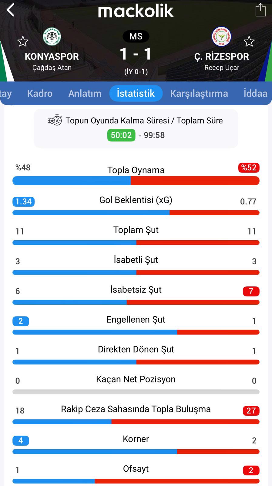 Süper Lig'in 15. haftasında Konyaspor ağırladığı Çaykur Rizespor ile 1-1'lik skorla berabere kaldı. Recep Uçar, Karadeniz ekibinin başında çıktığı ilk maçta eski takımına karşı mücadele etti.