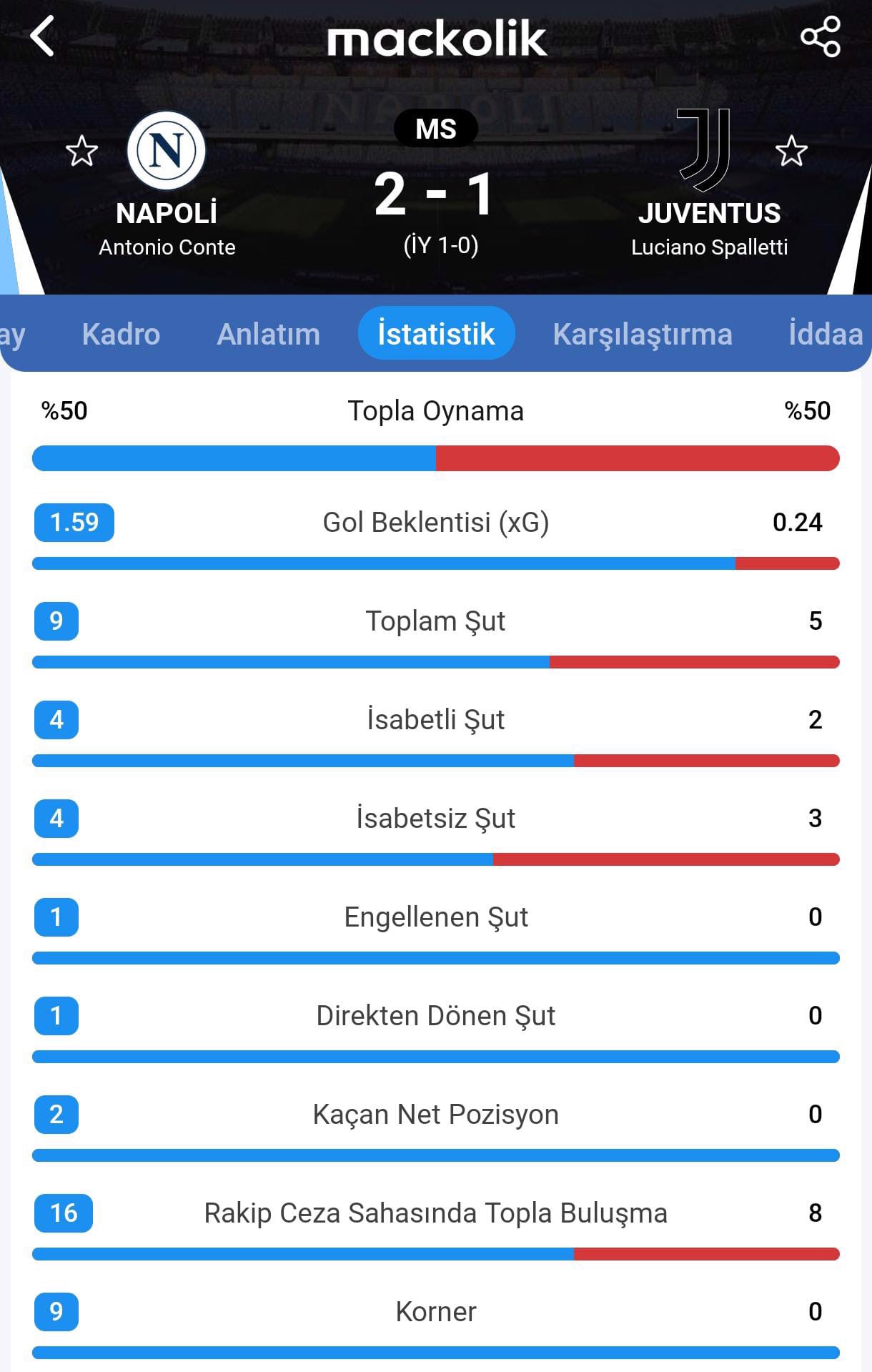 İlk yarı 1-0 Napoli üstünlüğüyle sonuçlandı.