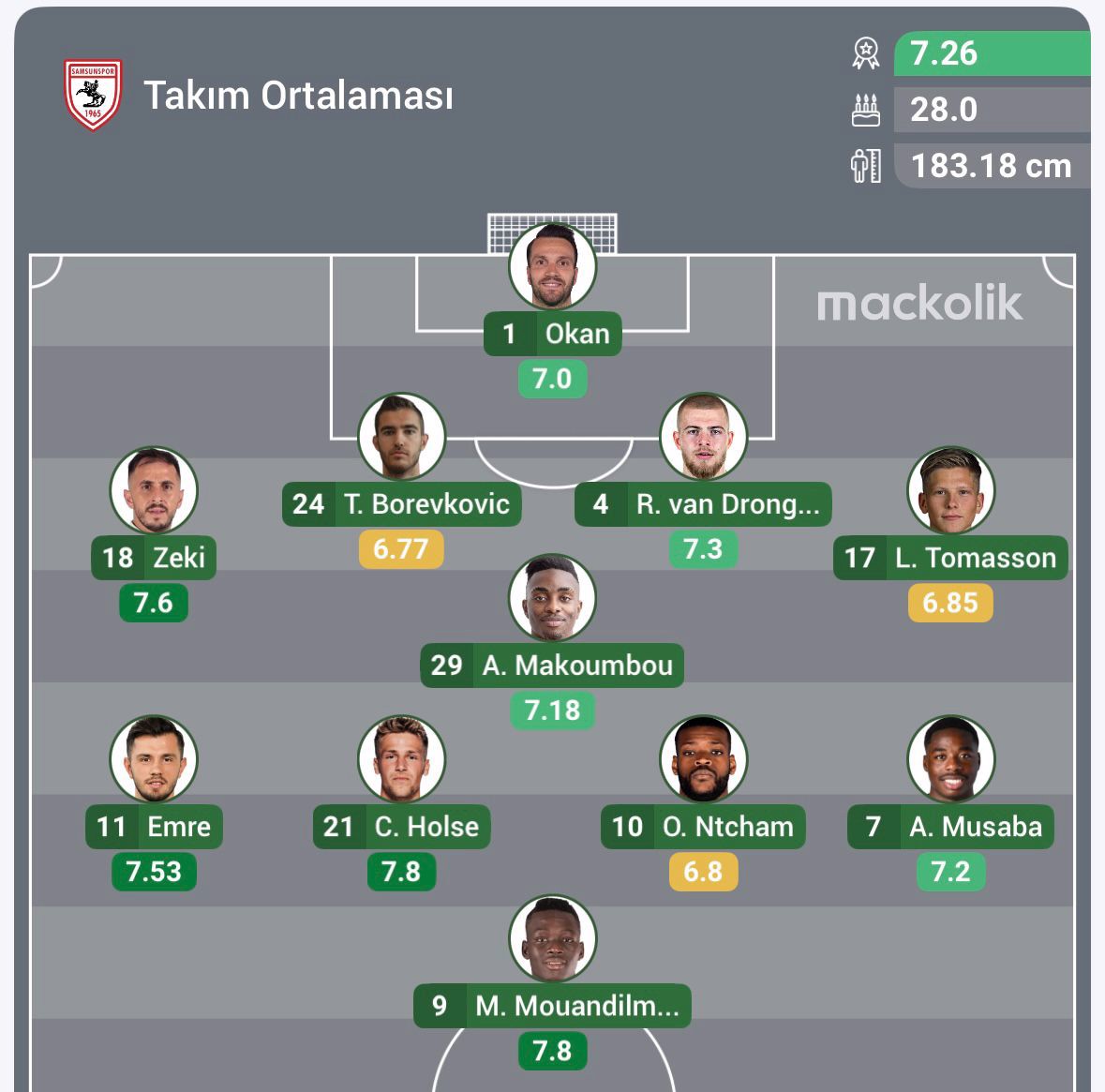 Samsunspor: Okan Kocuk, Tomasson, Drongelen, Borevkovic, Zeki Yavru, Musaba, Ntcham, Makoumbou, Holse, Emre Kılınç, Mouandilmadji
