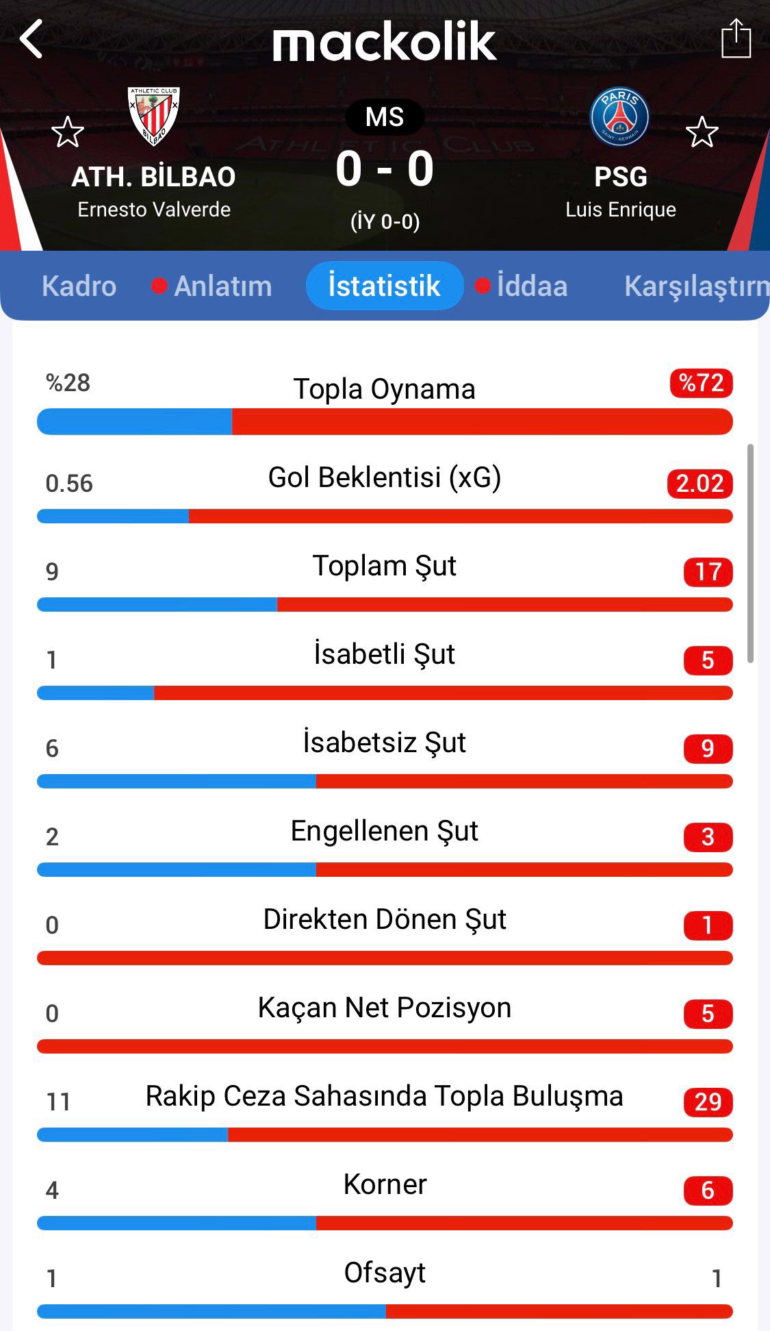 Şampiyonlar Ligi'nde Athletic Bilbao, sahasında PSG ile 0-0 berabere kaldı.