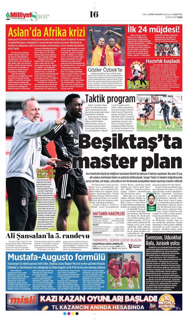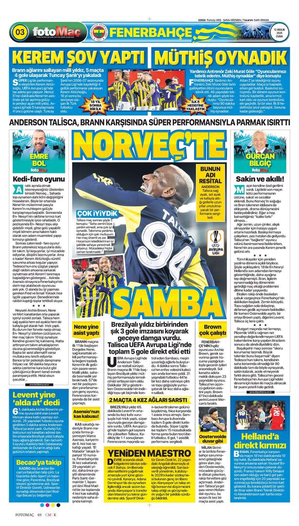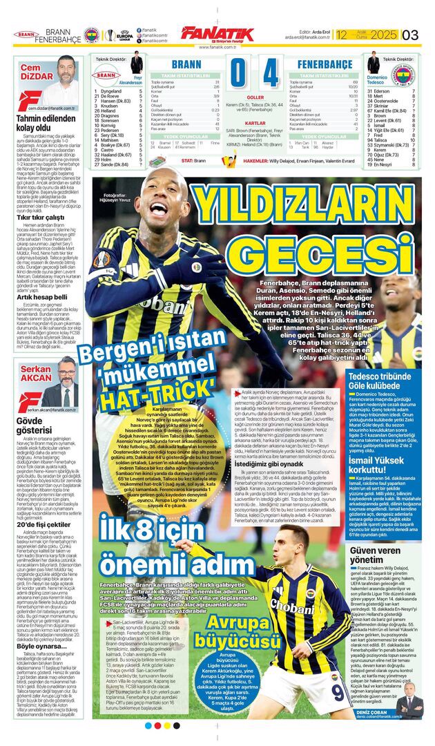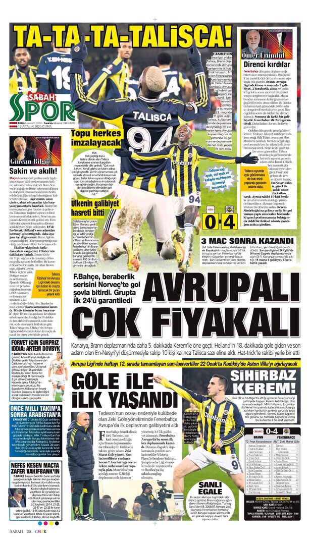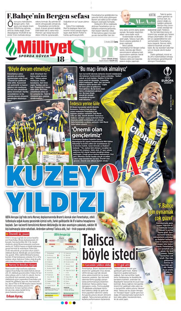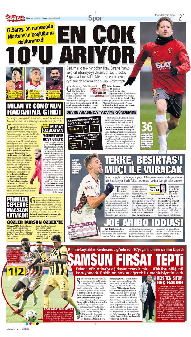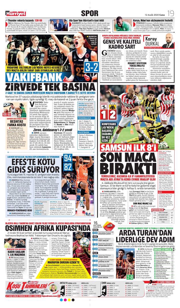 Gazetelerin spor sayfalarında günün öne çıkan manşetlerine göz atabilirsiniz.