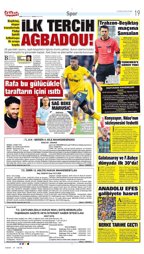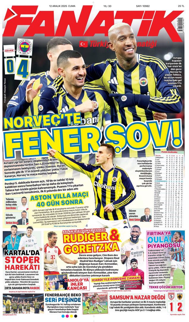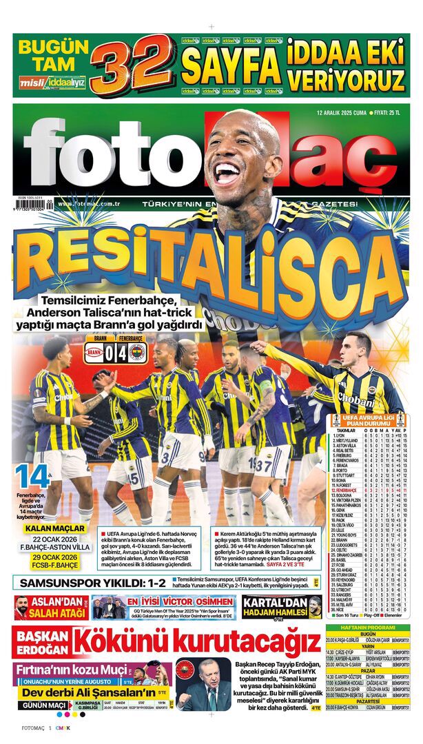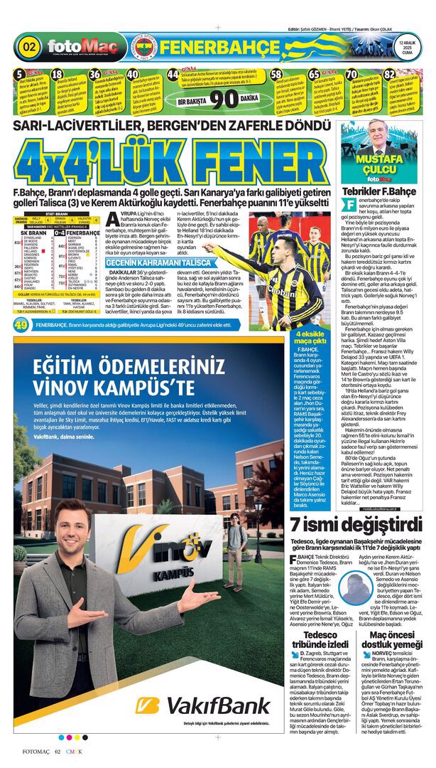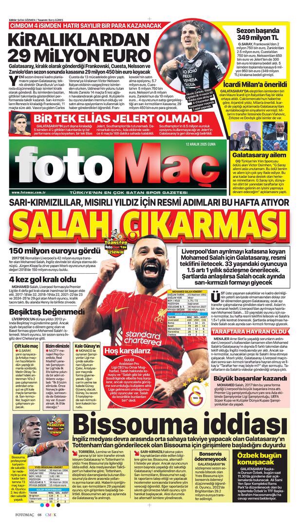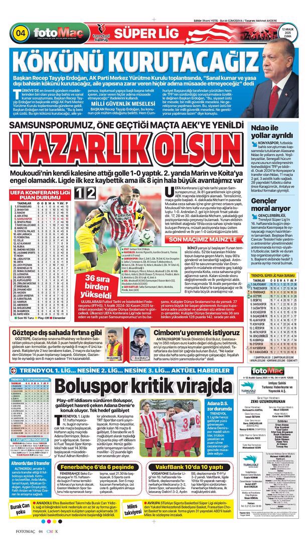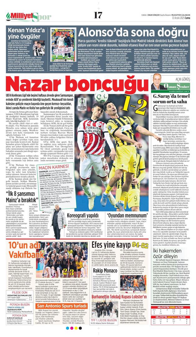 Gazetelerin spor sayfalarında günün öne çıkan manşetlerine göz atabilirsiniz.