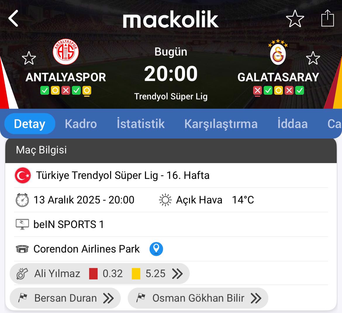 Galatasaray, Trendyol Süper Lig'in 16. haftasında Antalyaspor'a konuk oluyor.