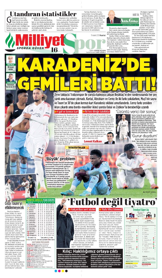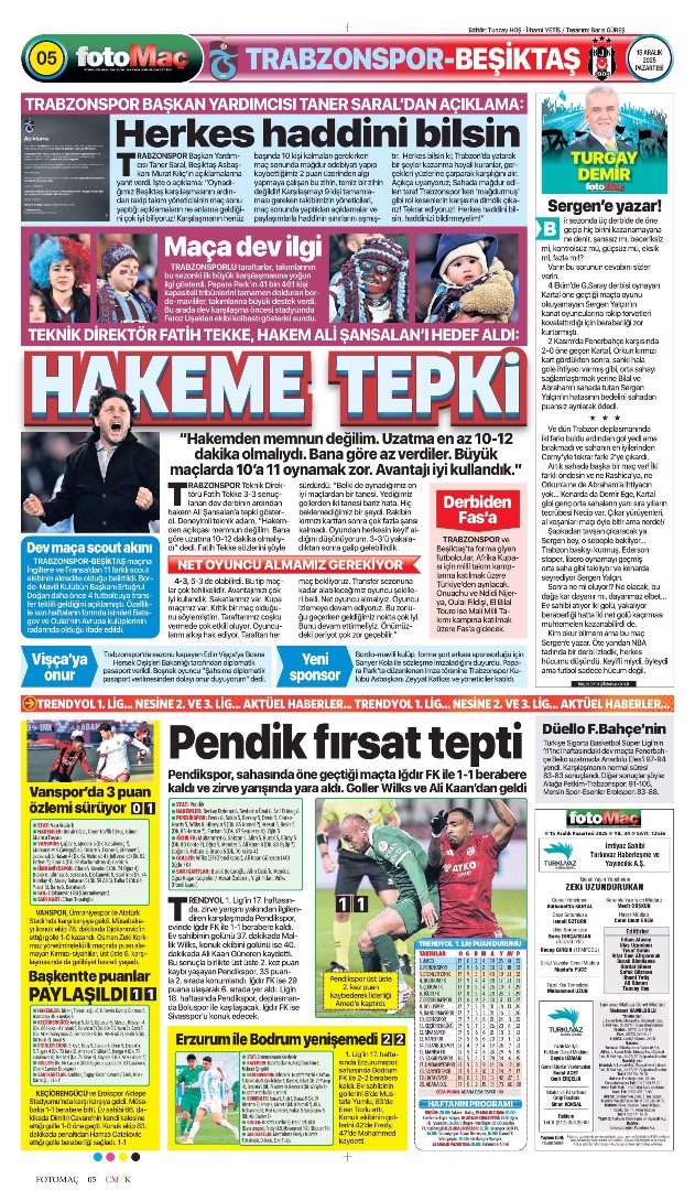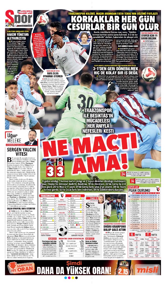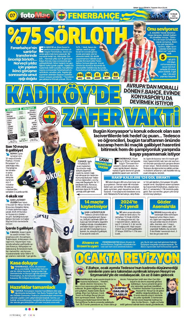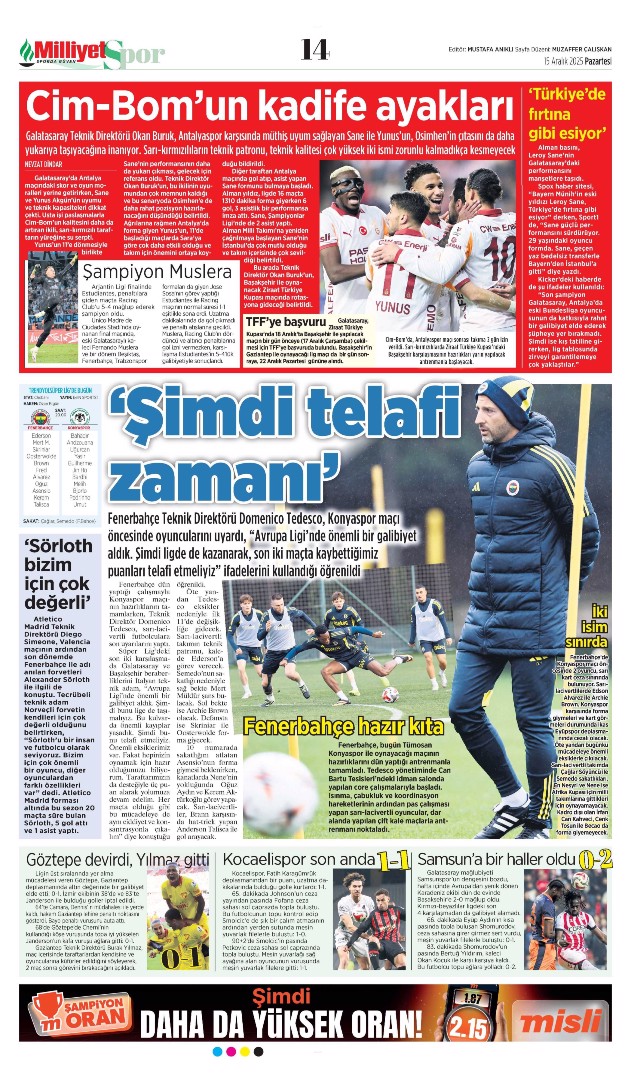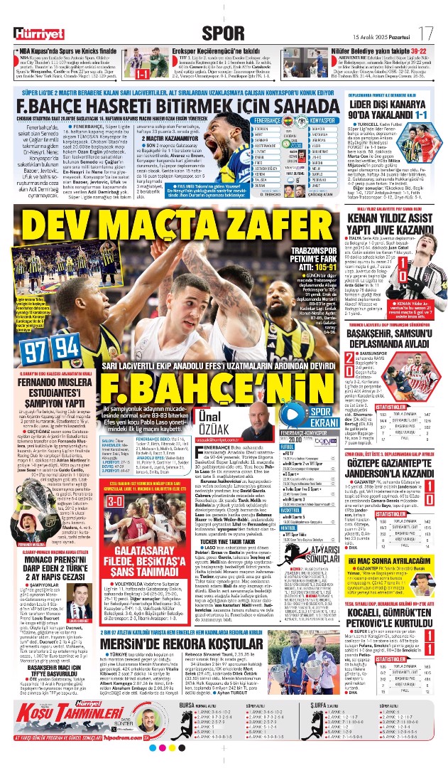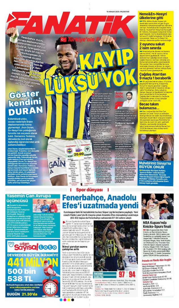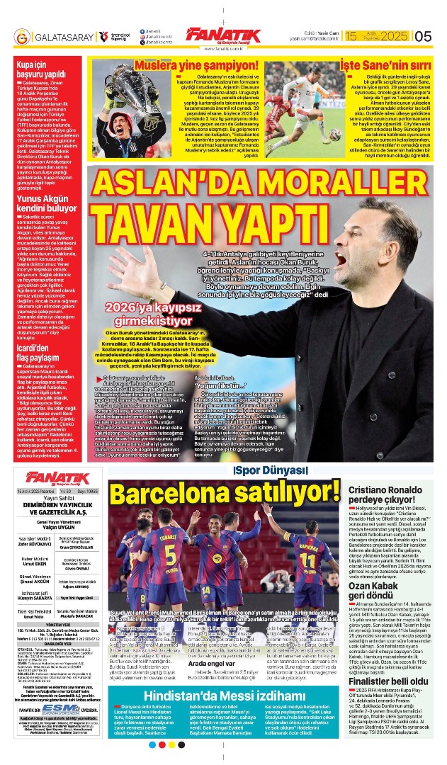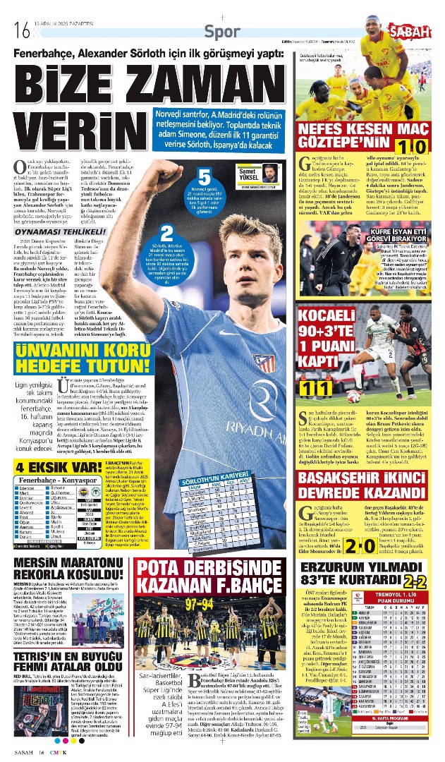 Gazetelerin spor sayfalarında günün öne çıkan manşetlerine göz atabilirsiniz.