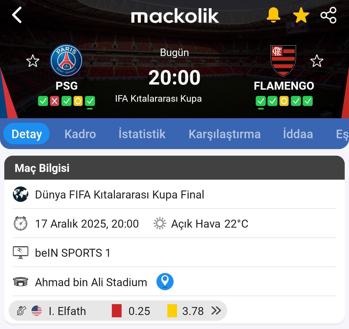 Final öncesinde Doha'da konuşan PSG Teknik Direktörü Luis Enrique, "Geçen sezon gördüklerimizin üzerine koymaya odaklanıyorum. Tarih yazmak geçen sezonun hedefiydi ve bunu sürdürmek istiyoruz. Her final farklıdır. Flamengo çok iyi bir takım ve zorlu, dengeli bir final olacak" ifadelerini kullandı.
