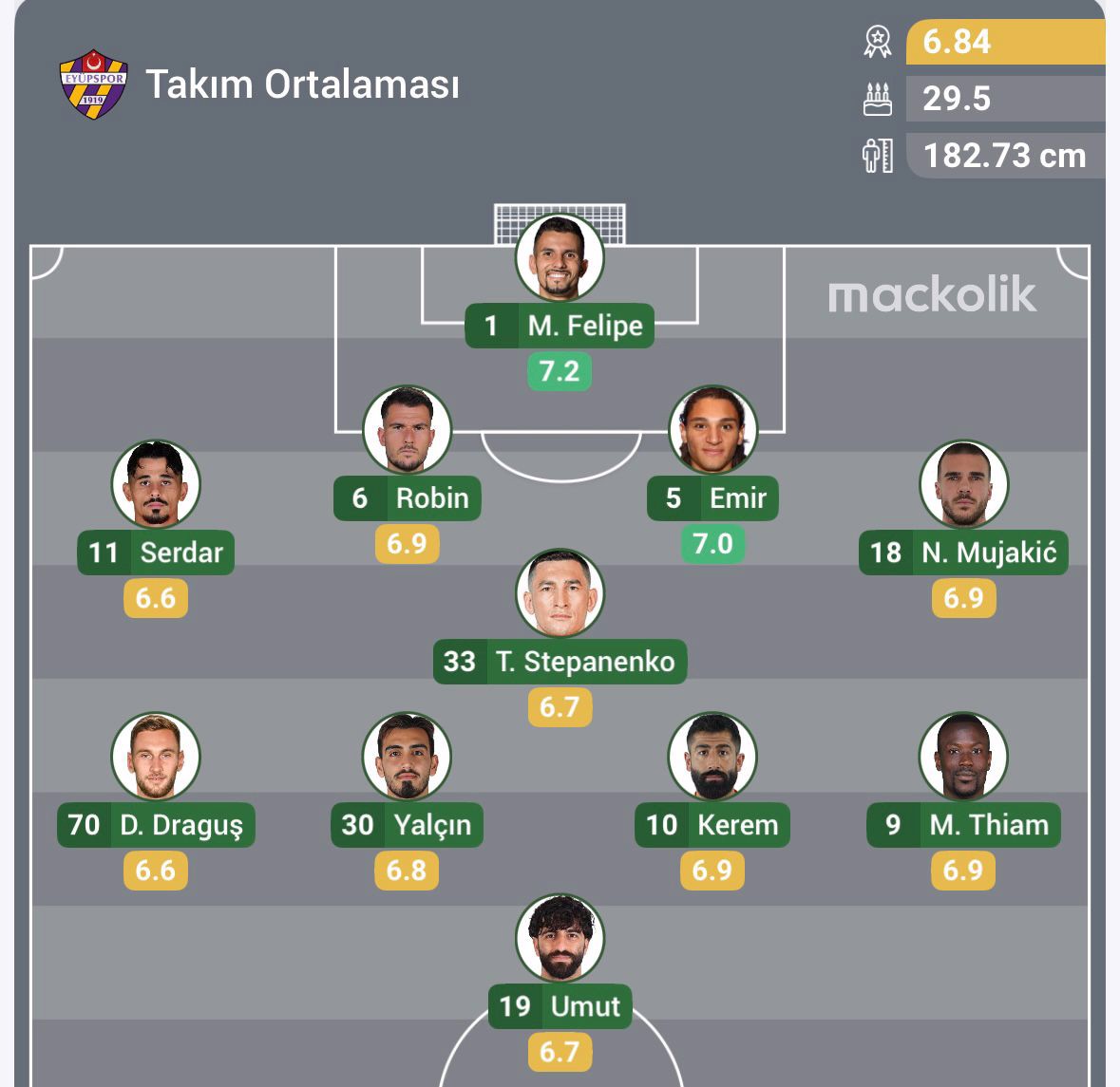 Eyüpspor: Felipe, Mujakic, Emir Ortakaya, Robin, Serdar Gürler, Stepanenko, Thiam, Kerem Demirbay, Yalçın Kayan, Draguş, Umut Bozok