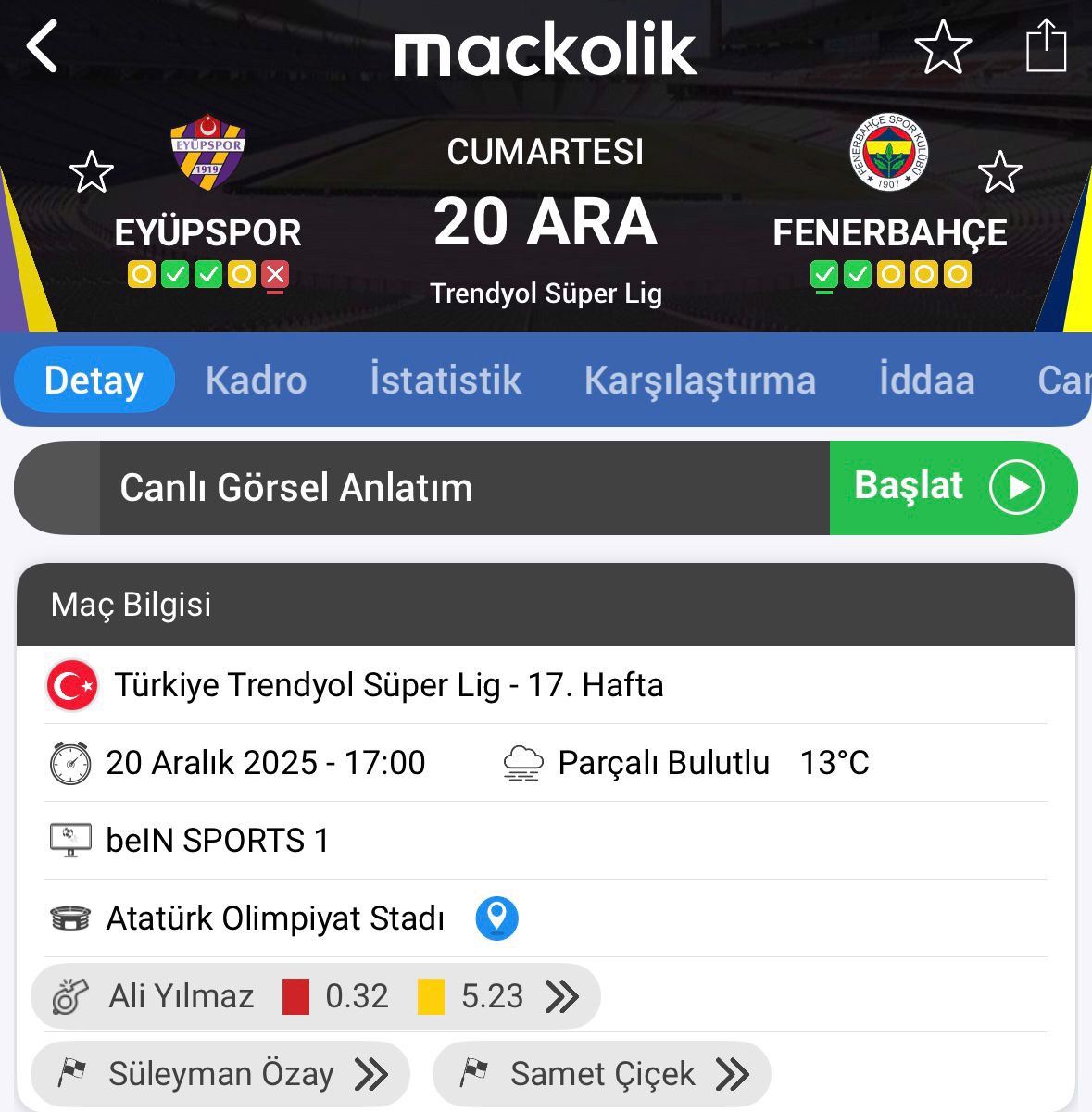Süper Lig'in 17. haftasında ve ilk yarının son hafta maçında Fenerbahçe, Eyüpspor deplasmanına konuk oluyor.