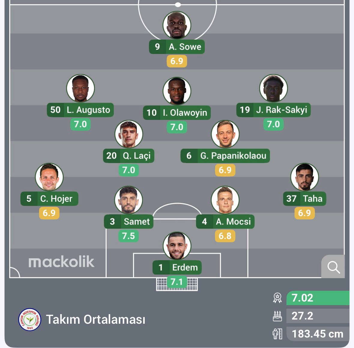 Ç.Rizespor: Erdem Canpolat, Taha Şahin, Mocsi, Samet Akaydın, Hojer, Papanikolaou, Laçi, Rak-Sakyi, Olawoyin, Augusto, Ali Sowe
