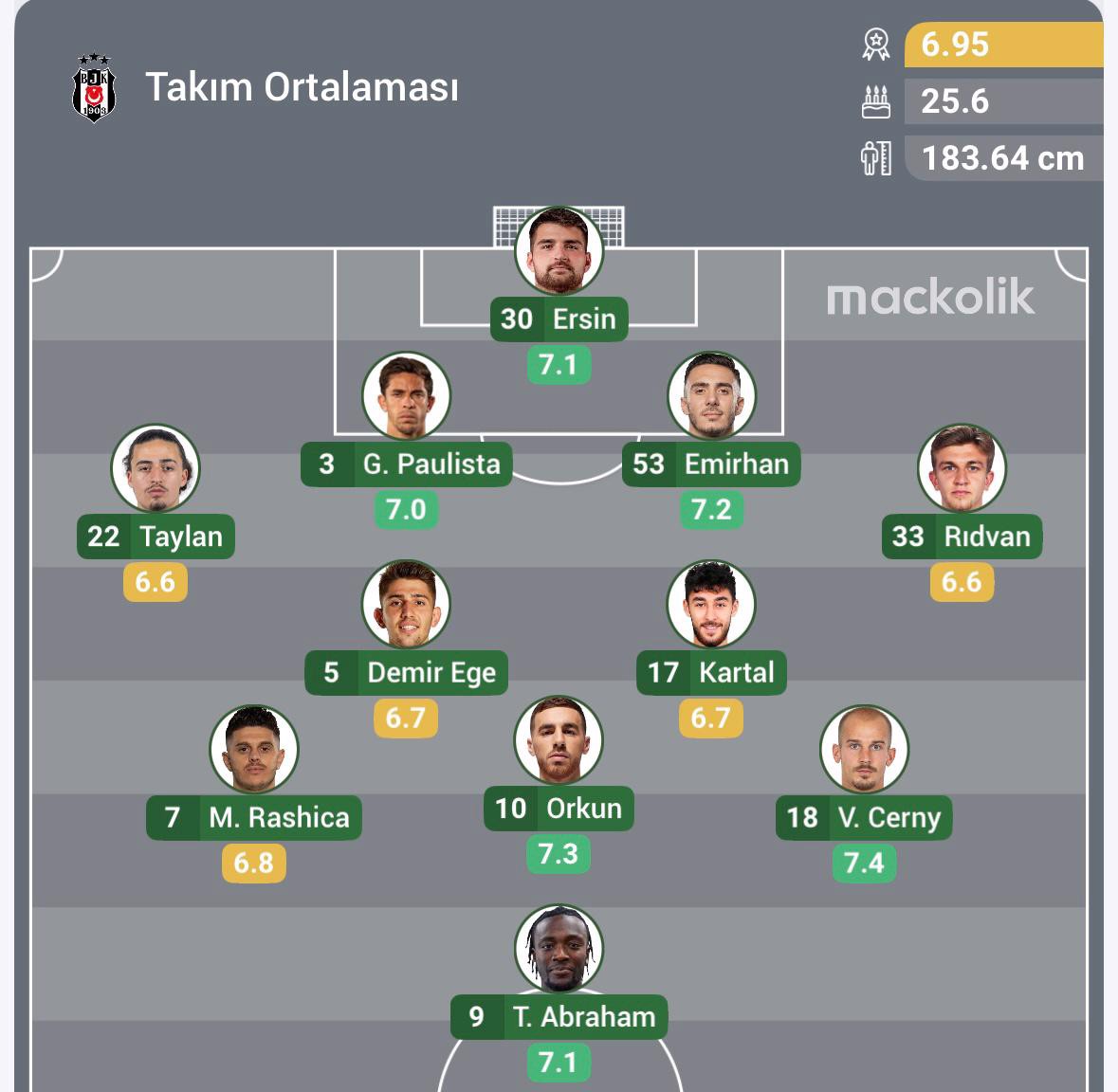 Beşiktaş: Ersin Destanoğlu, Rıdvan Yılmaz, Emirhan Topçu, Paulista, Taylan Bulut, Kartal Yılmaz, Demir Ege Tıknaz, Cerny, Orkun Kökçü, Rashica, Abraham