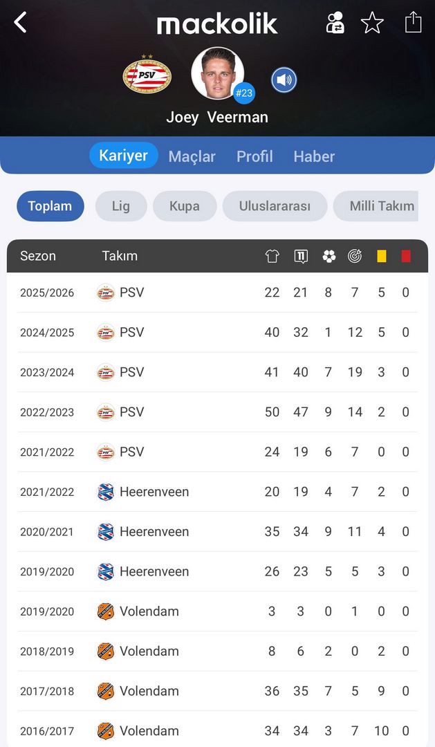 Ligde oynadığı son 3 maçta da ağları havalandıran Veerman, PSV'de beşinci sezonunu geçiriyordu.