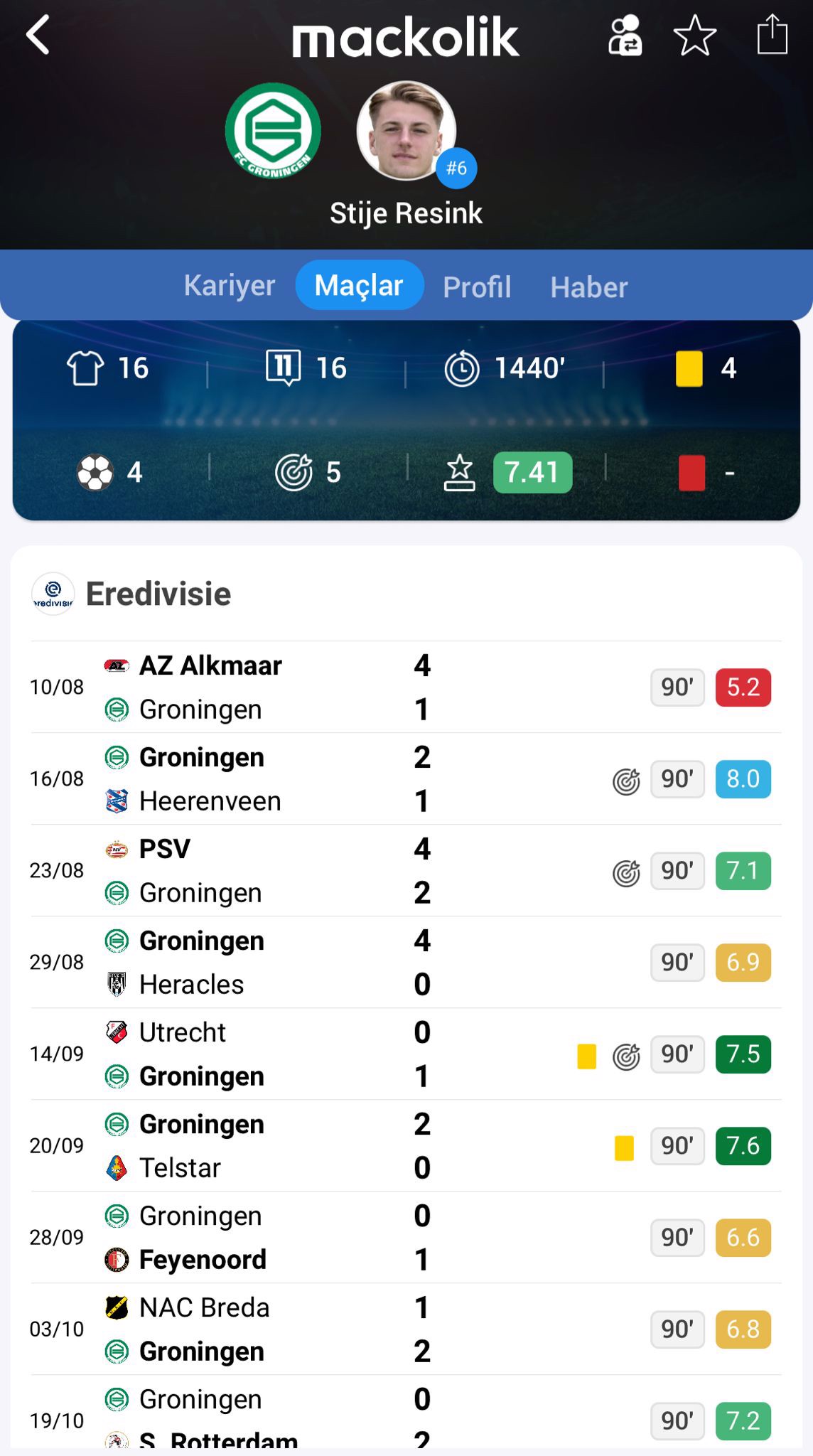 Piyasa değeri 7 milyon Euro olan Resink, bu sezon Groningen formasıyla 17 maçta 4 gol ve 5 asistlik performans sergiledi.