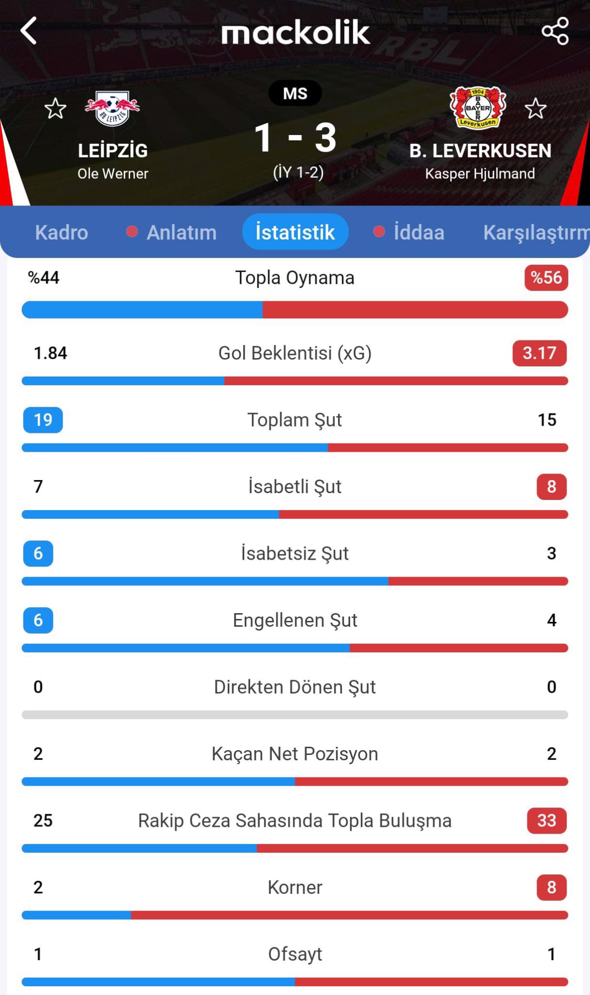 Karşılaşmanın 35. dakikasında Xaver Schlager'in golüyle Leipzig 1-0 öne geçti.