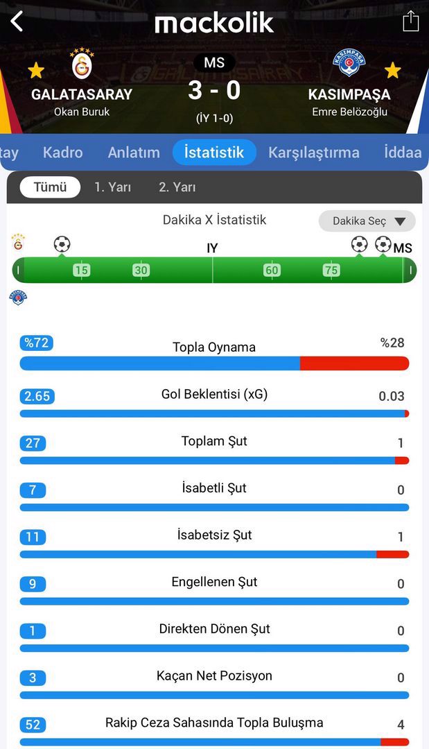 Karşılaşmanın kalan bölümünde gol sesi çıkmadı ve Okan Buruk'un öğrencileri sahadan 3-0 galip ayrıldı.