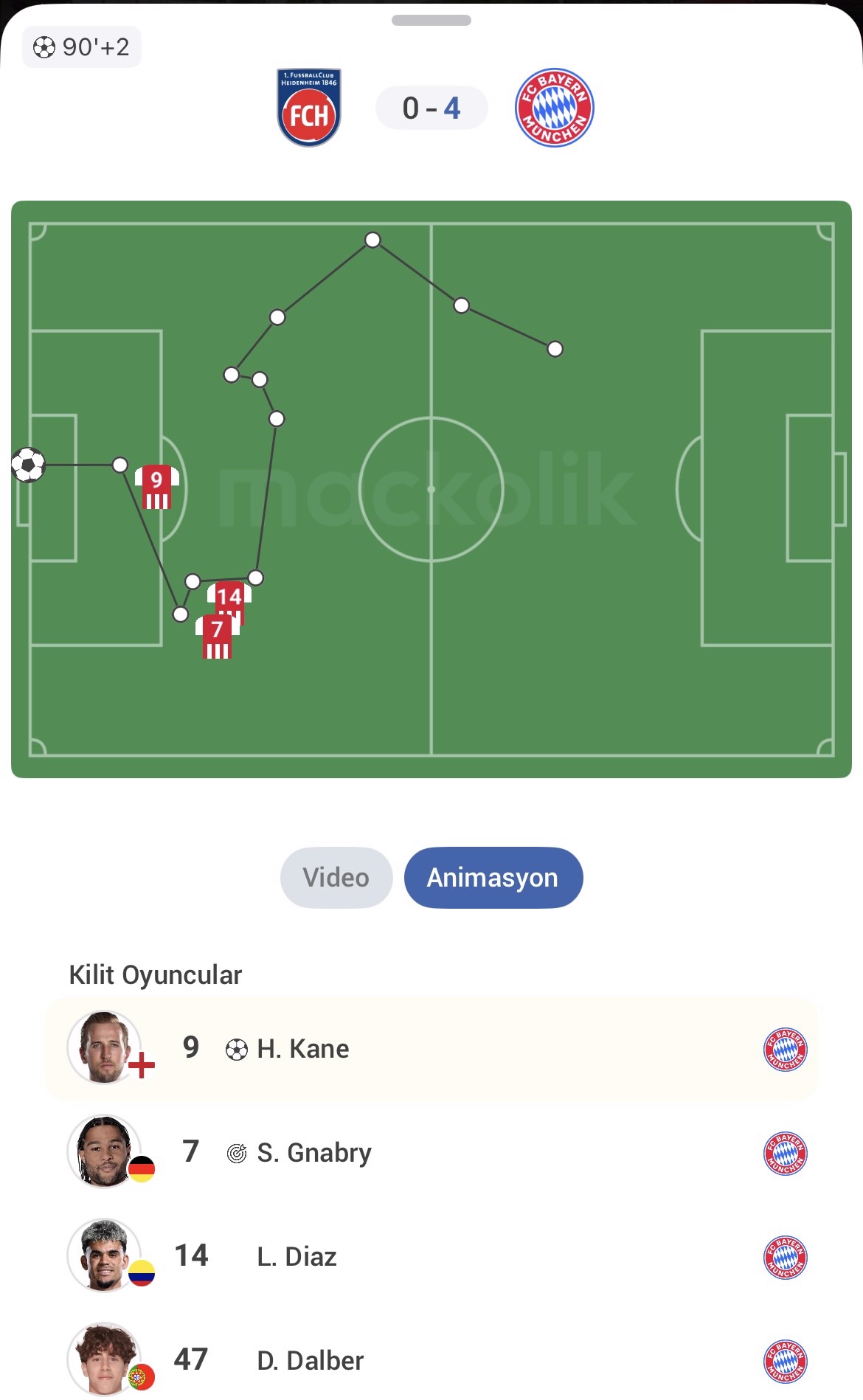 Bayern Münih konuk olduğu maçta Heidenheim'ı Stanisic, Olise, Diaz ve Kane'in kaydettiği gollerle 4-0 mağlup etti. Ligdeki yenilmezlik serisini 15'e yükselten lider Bayern Münih puanını 41'e çıkardı.