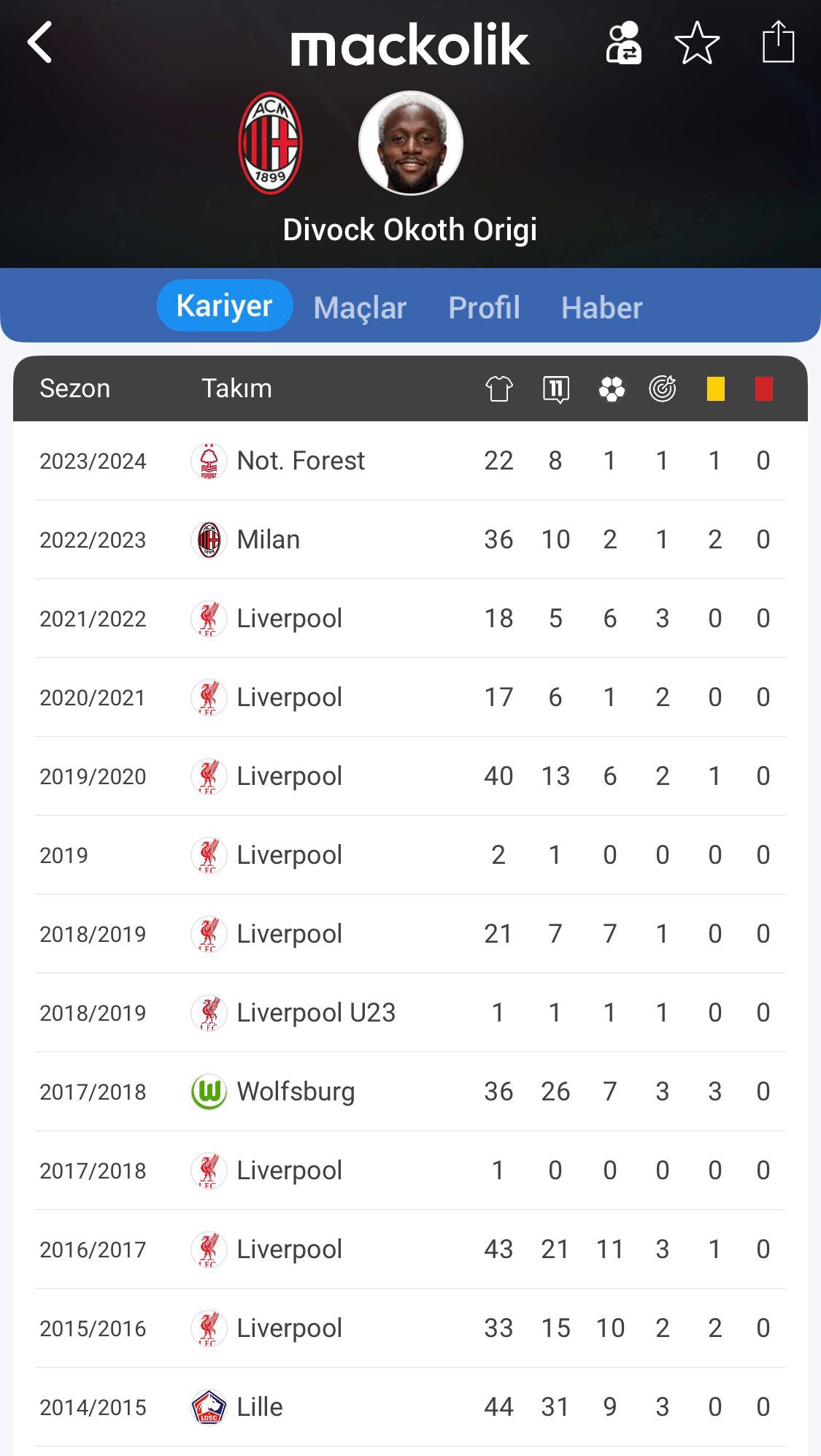 Divock Origi, 2022-23 sezonunun yaz transfer döneminde Liverpool ile sözleşmesinin sona ermesinin ardından Milan'a serbest oyuncu olarak imza attı. İtalyan ekibinde geçirdiği bir sezonda 36 maçta 2 gol ve 1 asistlik katkı sağlayan Belçikalı forvet, daha sonra Nottingham Forest'a kiralandı. İngiltere'de çıktığı 22 karşılaşmada 1 gol ve 1 asist üreten Origi, geçen sezondan bu yana ise herhangi bir resmi maçta forma şansı bulamamıştı.
