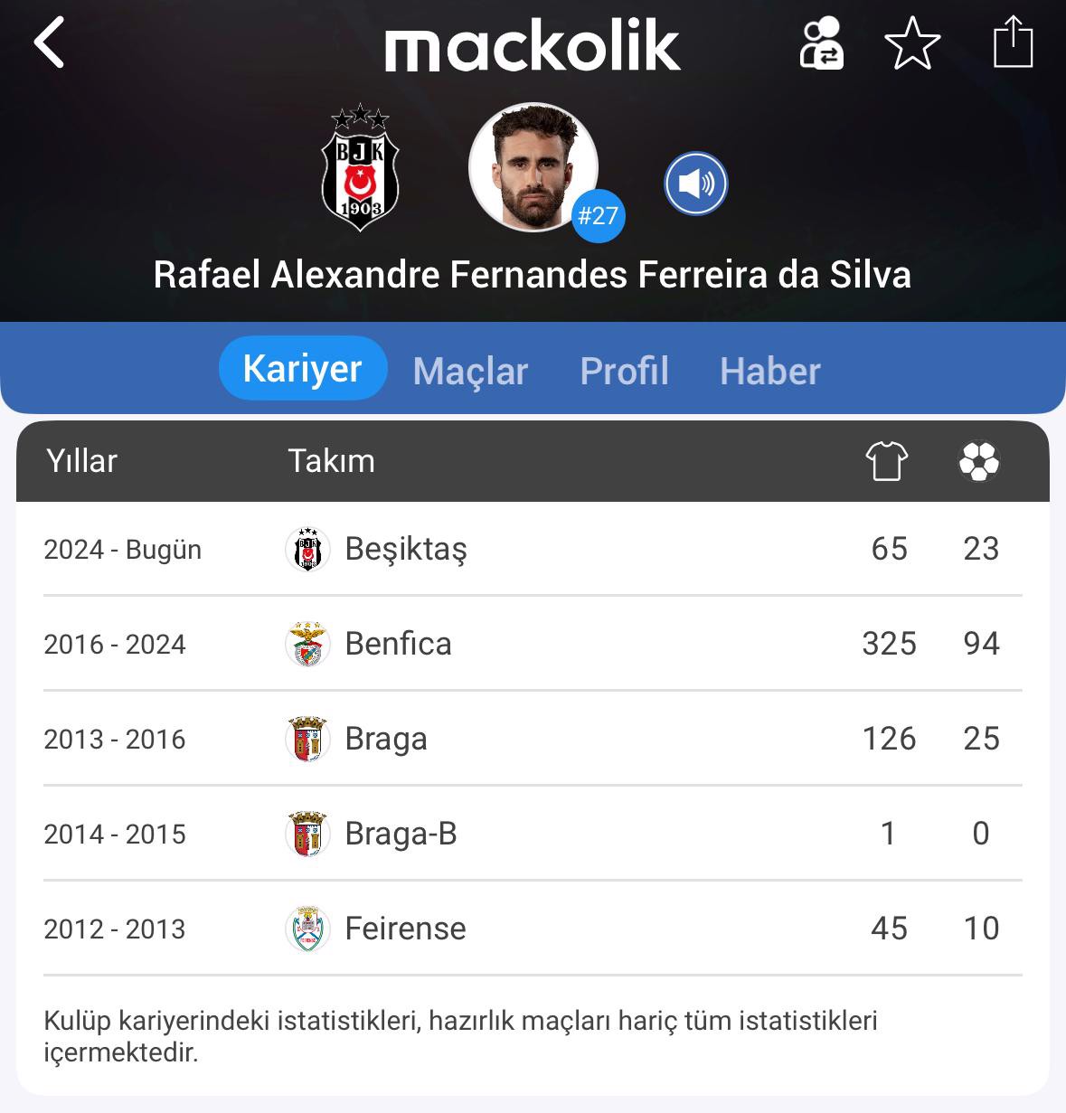 Bu sezon Beşiktaş formasıyla 16 resmi karşılaşmada görev alan Rafa Silva, 5 gol ve 3 asistlik performans sergiledi.