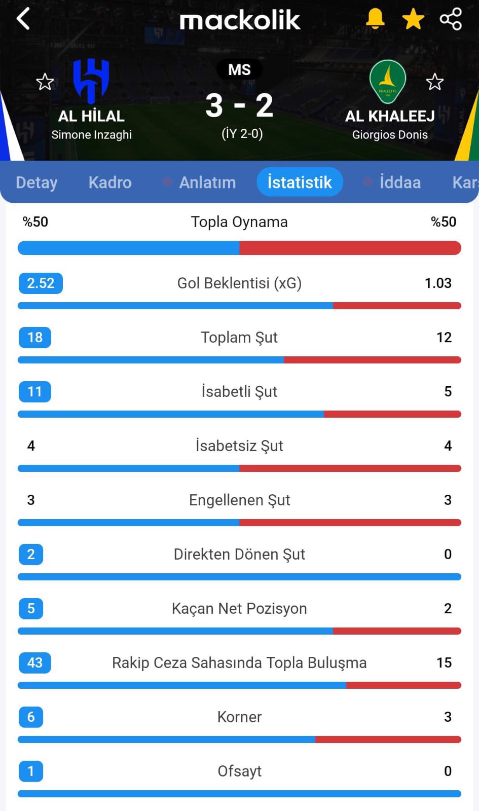 Kalan dakikalarda gol olmadı ve Al Hilal, Al Khaleej'i 3-2 mağlup etti.