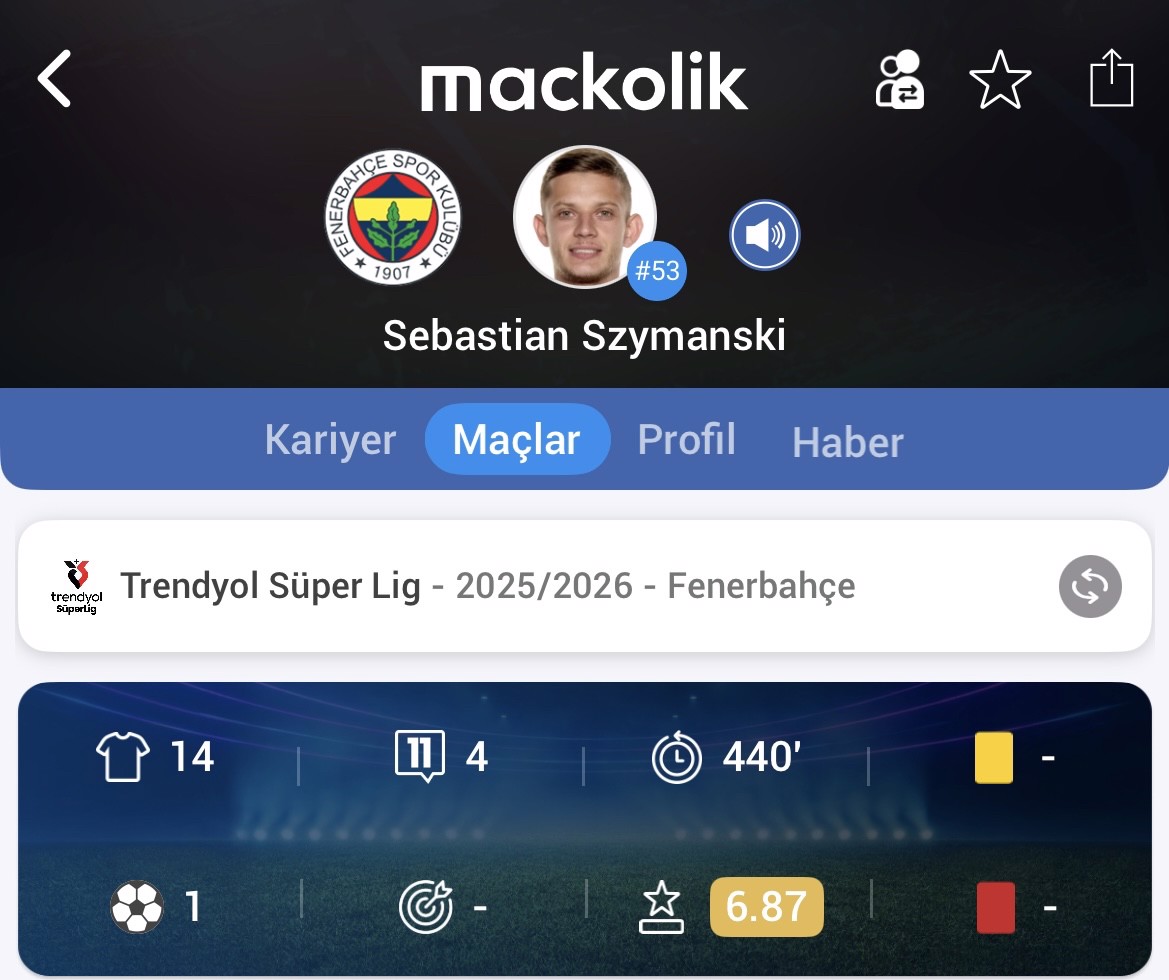 Bu sezon Fenerbahçe formasıyla 24 karşılaşmada görev yapan Szymanski, takımına 2 gol ve 1 asistlik skor katkısı sağladı.
