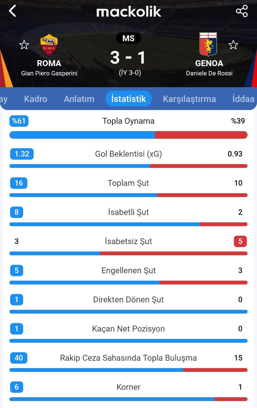 Kalan dakikalarda skor değişmedi ve Roma, Genoa'yı 3-1 mağlup etti.