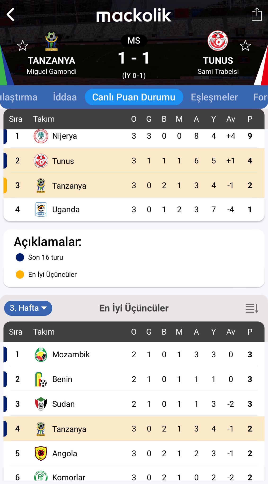 Afrika Uluslar Kupası C Grubu son hafta maçında Tanzanya ile Tunus karşılaştı.
