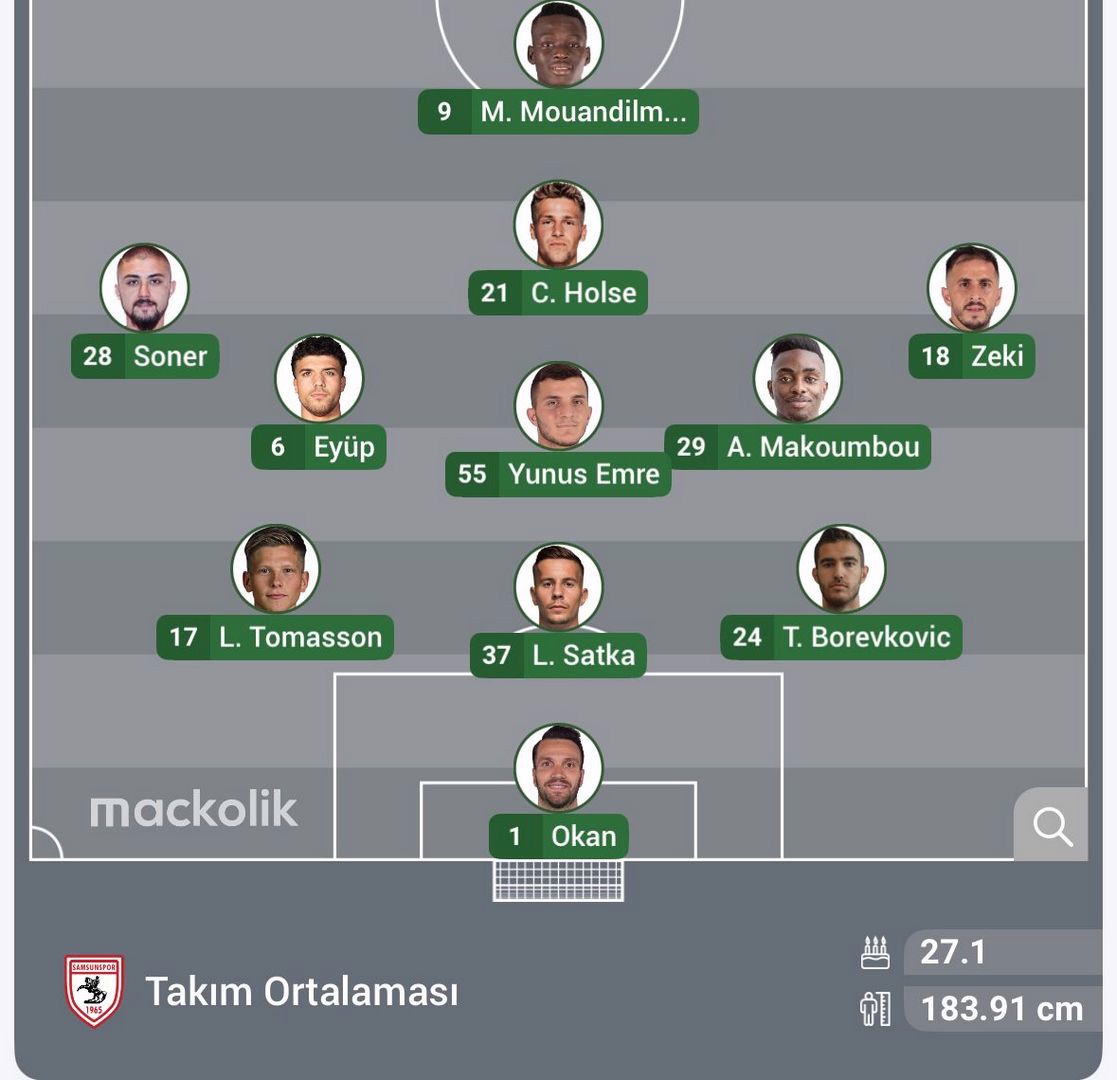 Samsunspor: Okan, Borevkovic, Satka, Tomasson, Zeki, Makoumbou, Yunus Emre, Eyüp, Soner, Holse, Mouandilmadji