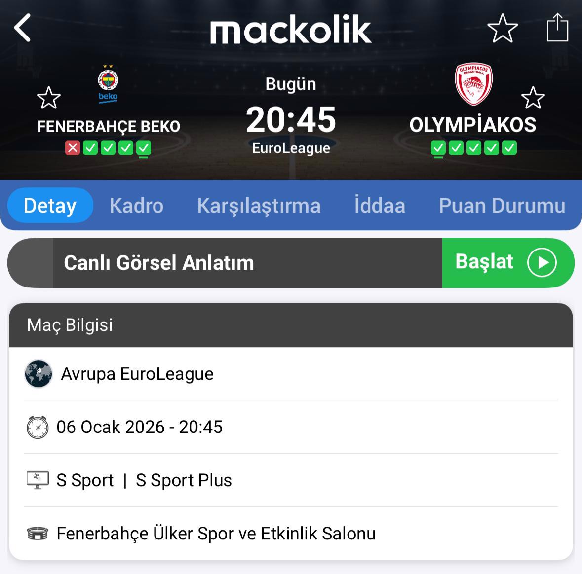 EuroLeague'in 20. haftasında Fenerbahçe Beko, Yunanistan'ın Olympiakos ekibini konuk edecek.