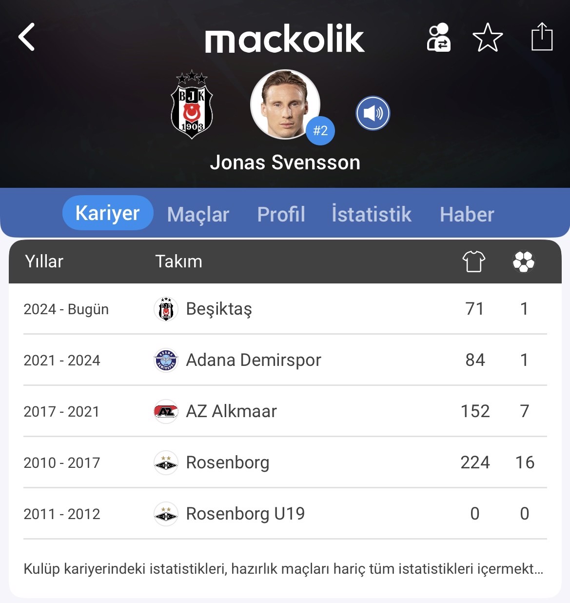 Adana Demirspor forması da giyen Svensson, AZ Alkmaar ve Rosenborg'da da görev yapmıştı.
