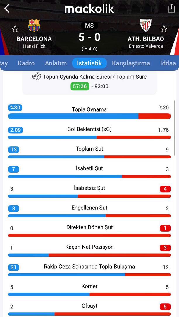 İkinci yarıya da hızlı başlayan Hansi Flick'in öğrencileri, 52. dakikada Raphinha ile bir gol daha buldu.