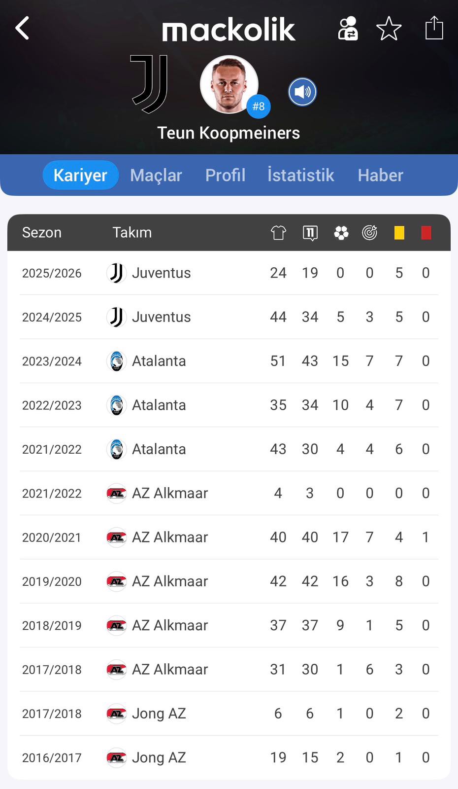 2024 yılının yaz ayında 58 milyon euro bedelle Atalanta'dan takıma transfer edilen Koopmeiners, bu sezon şu ana kadar 24 karşılaşmada görev aldı.