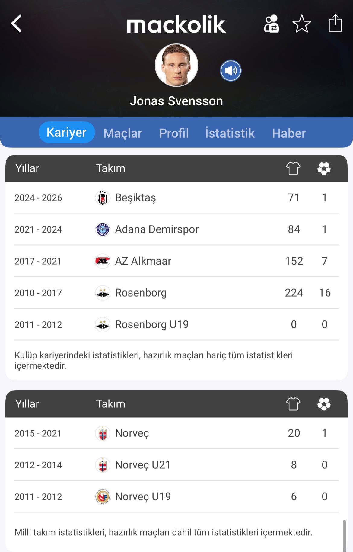 Adana Demirspor forması da giyen Svensson, AZ Alkmaar ve Rosenborg'da da görev yapmıştı.