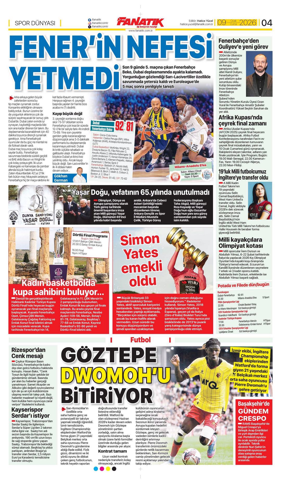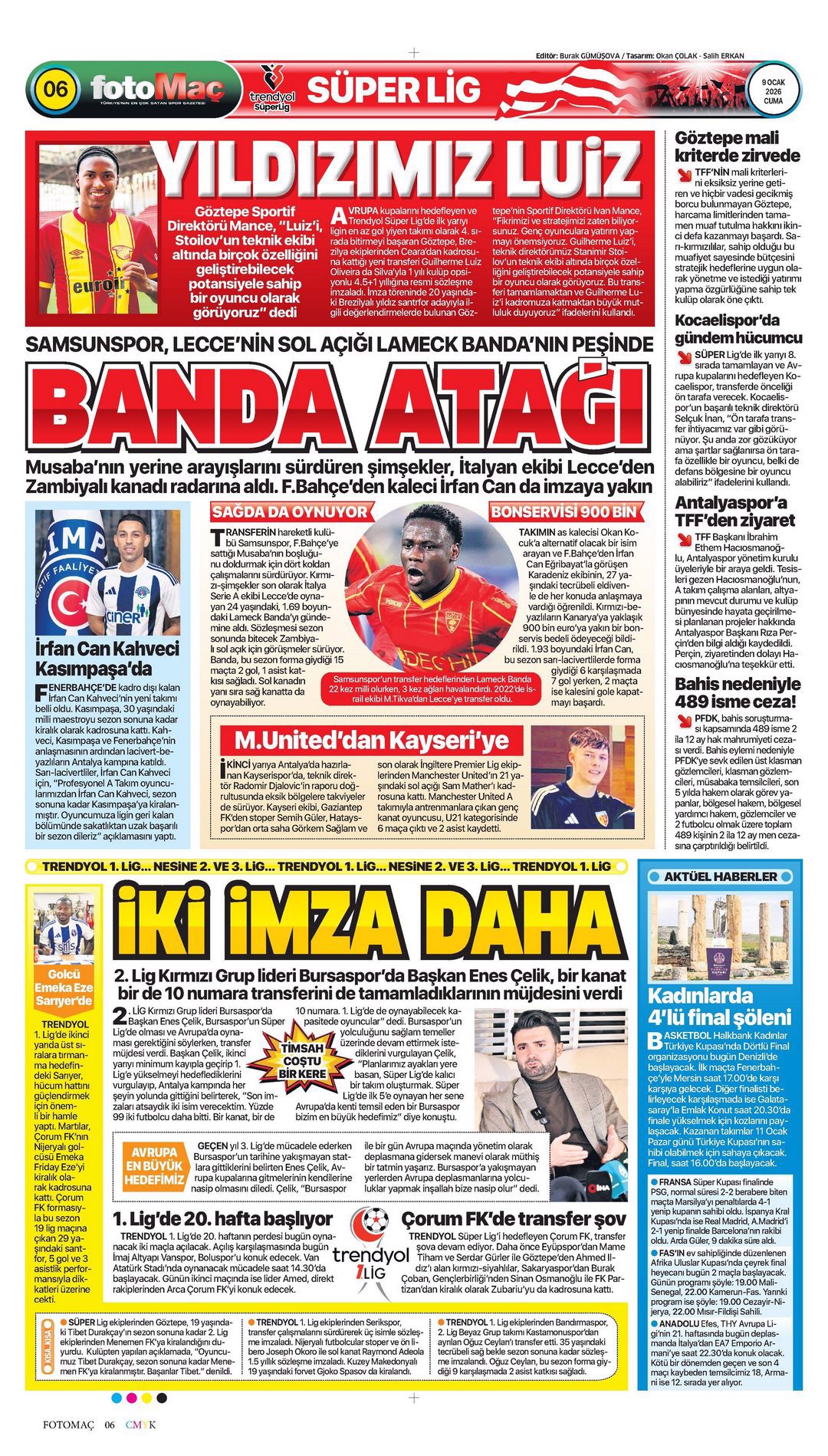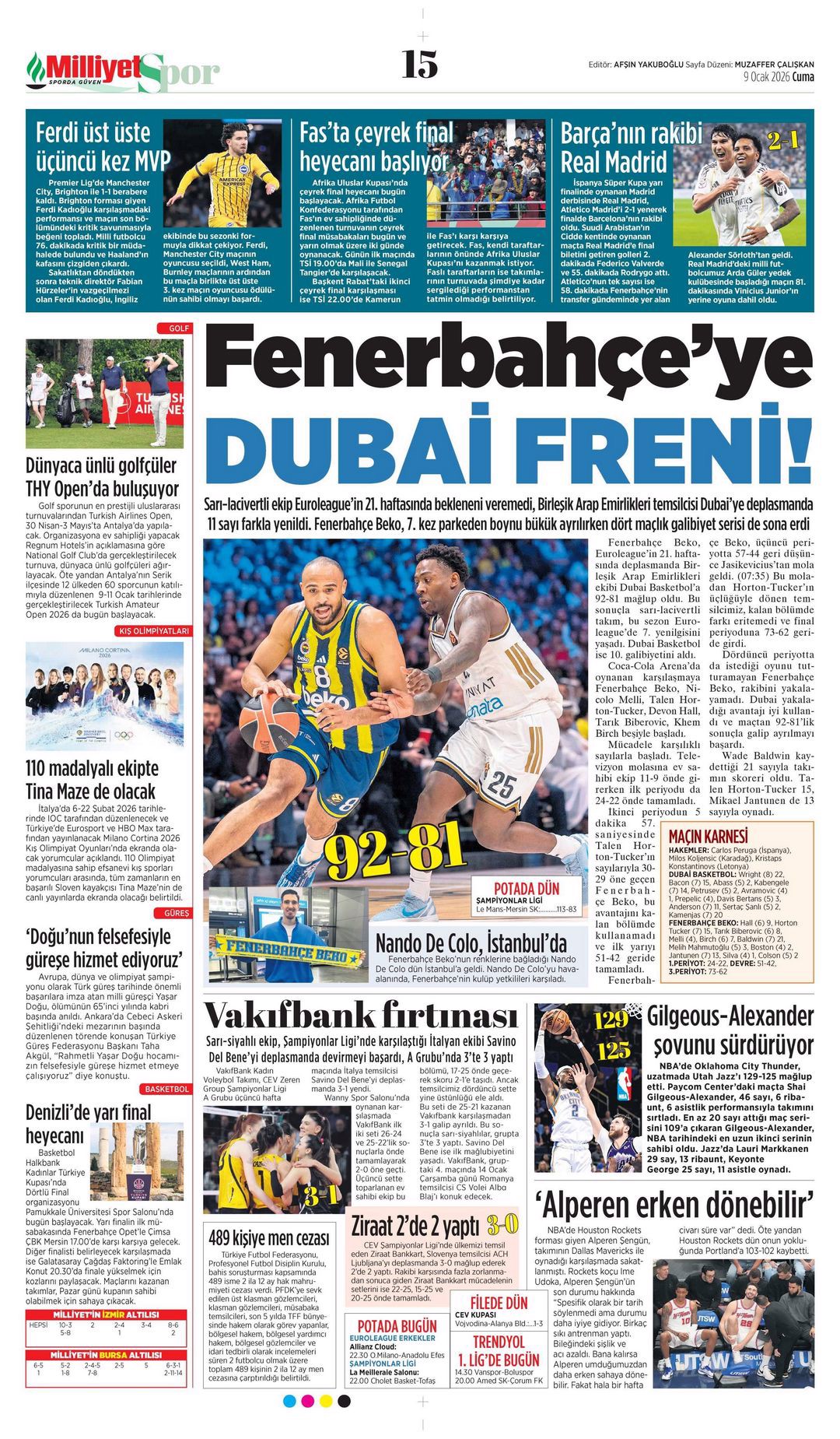 Gazetelerin spor sayfalarında günün öne çıkan manşetlerine göz atabilirsiniz.