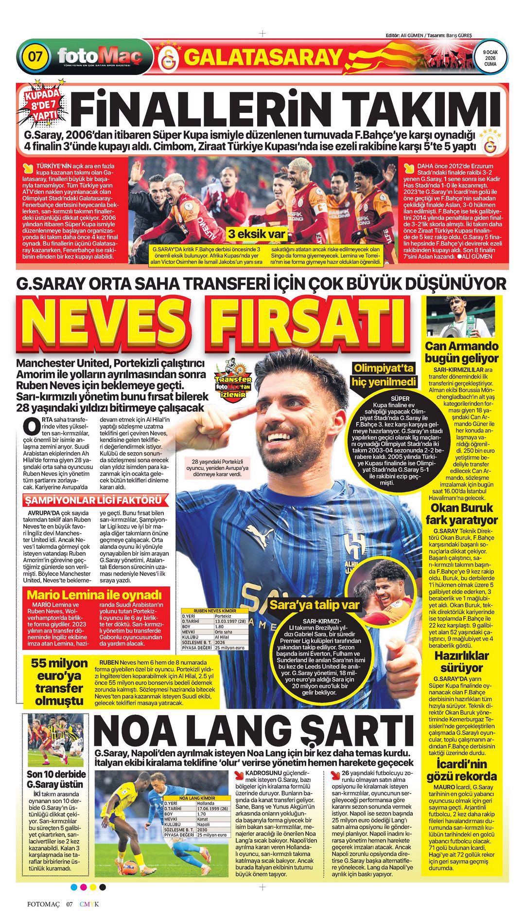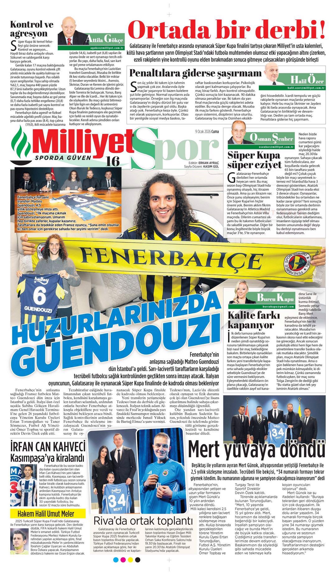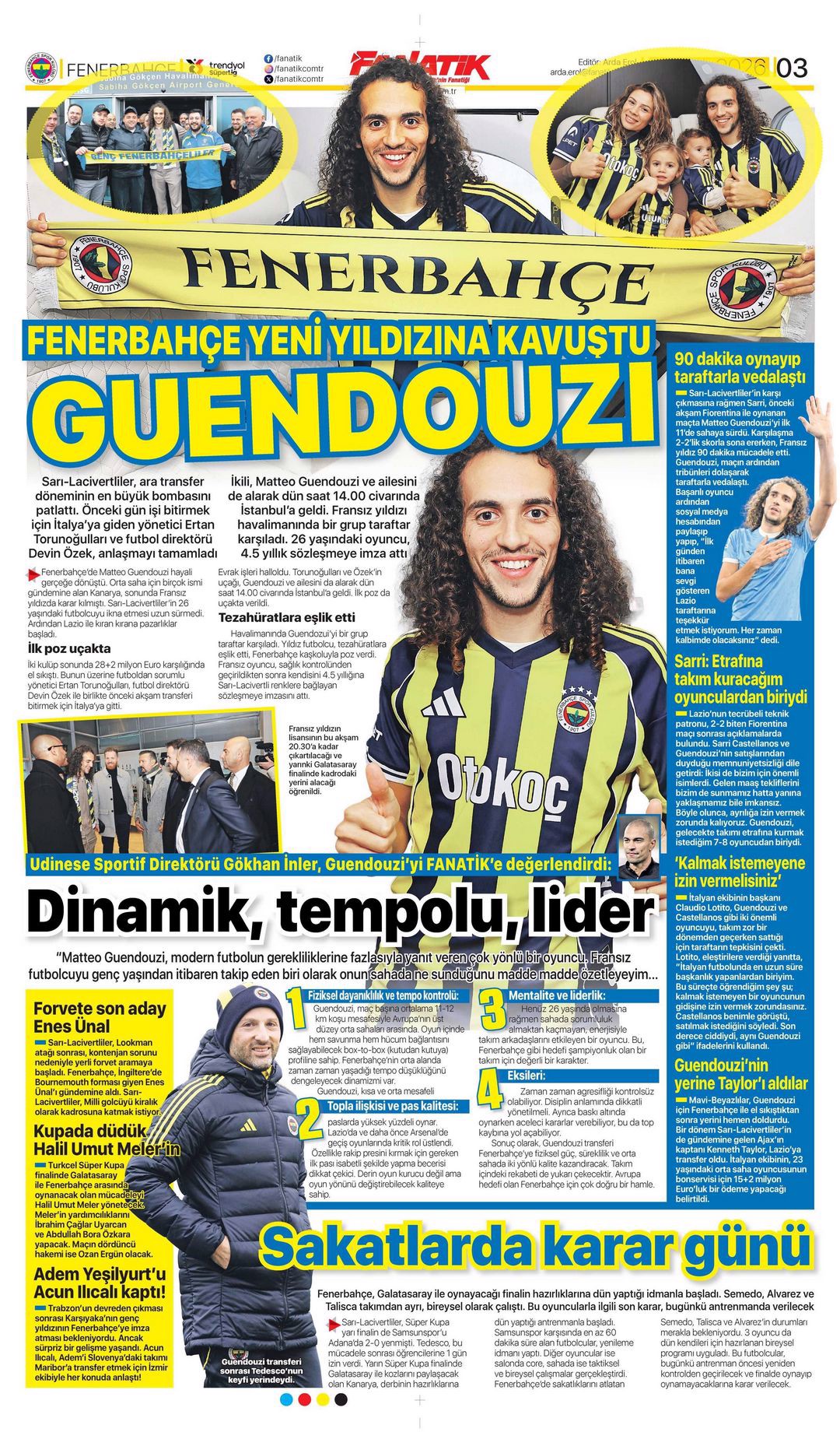 Gazetelerin spor sayfalarında günün öne çıkan manşetlerine göz atabilirsiniz.