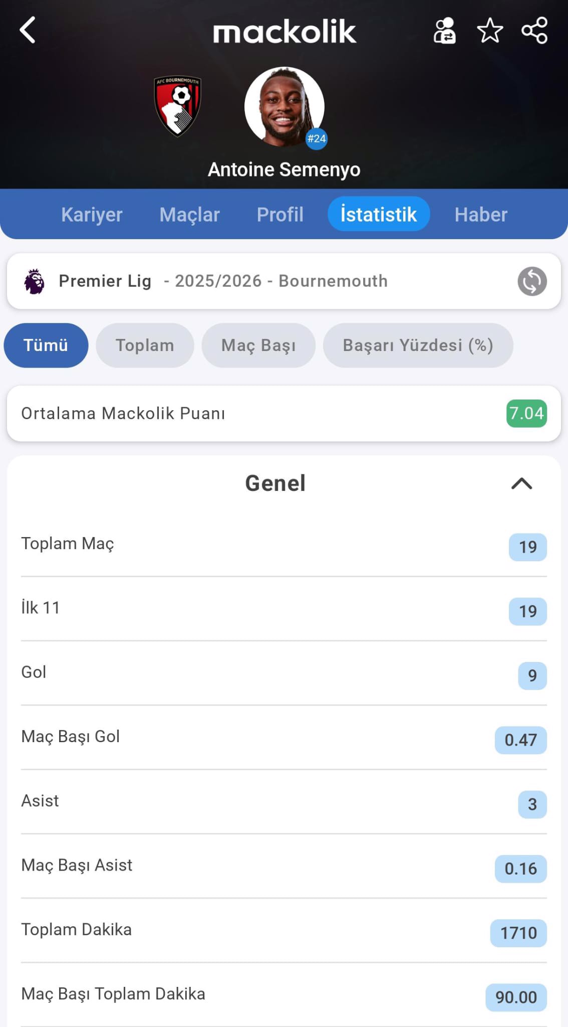 Manchester City, 2023'ten bu yana Bournemouth forması giyen Ganalı kanat oyuncusu Antoine Semenyo'yu transfer etti. 26 yaşındaki oyuncu İngiliz ekibiyle 5,5 yıllık sözleşmeye imza attı.