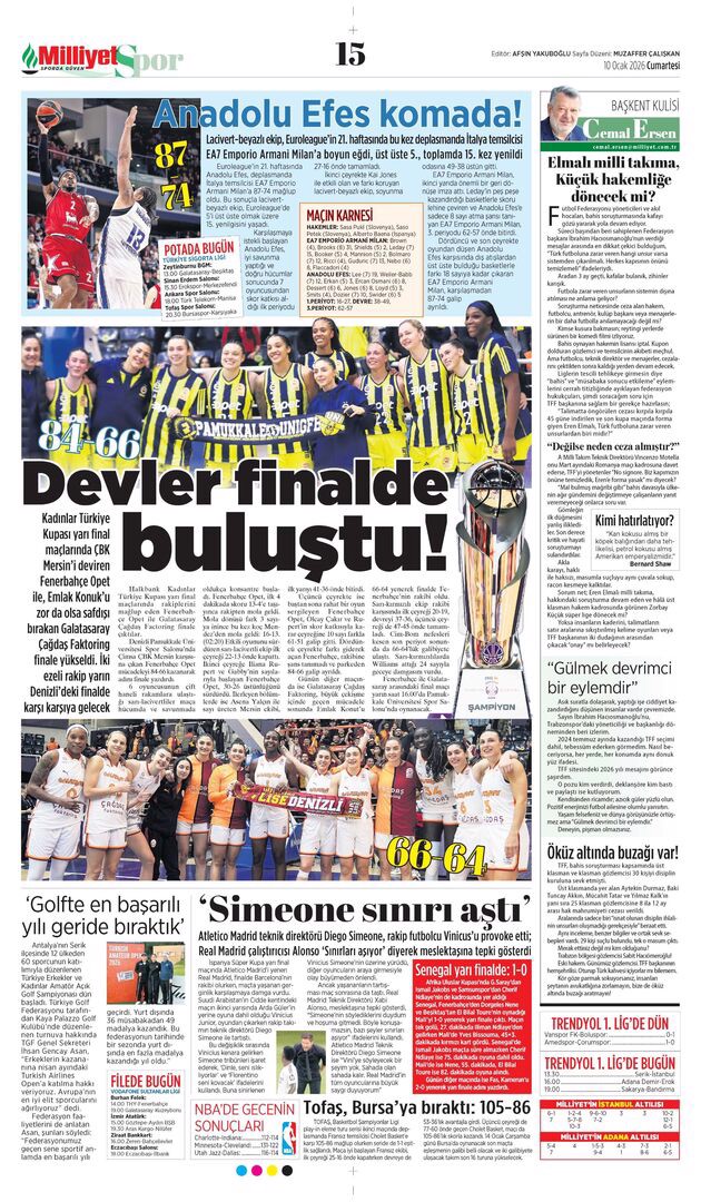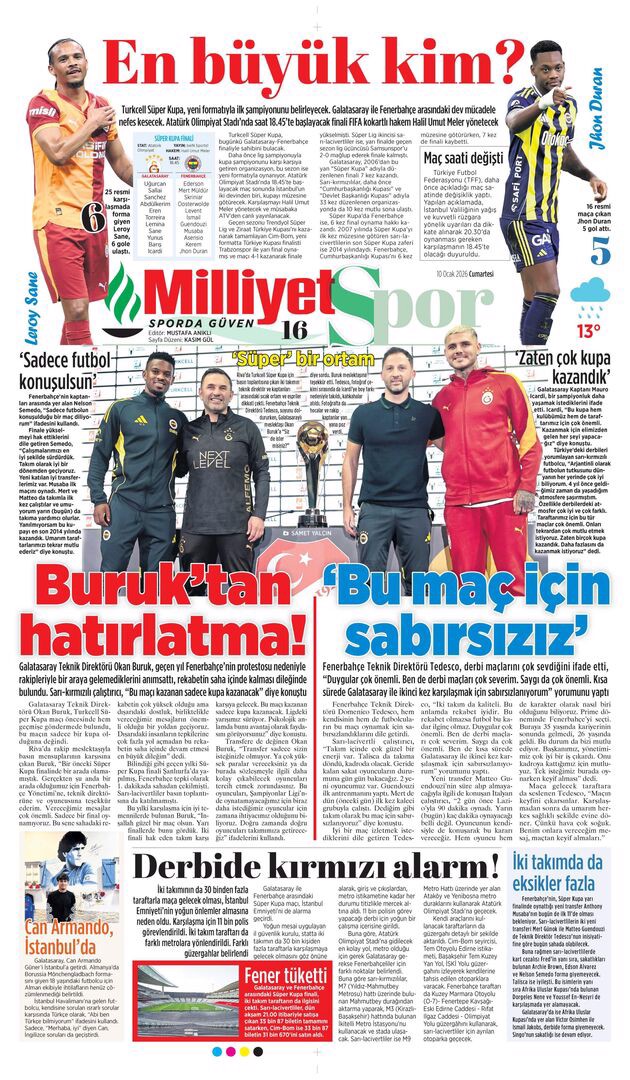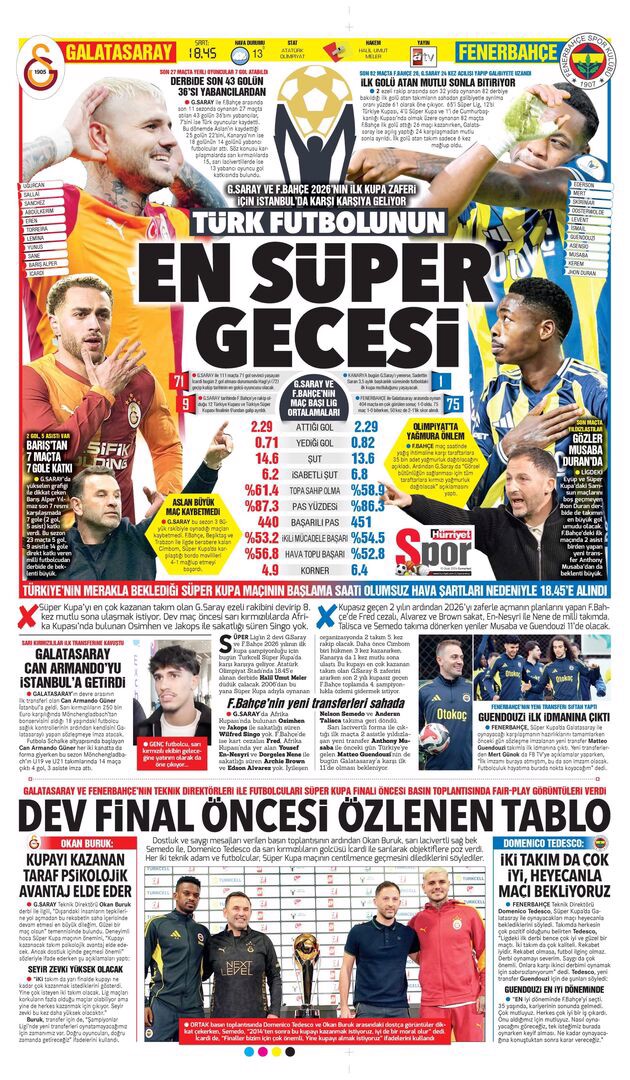 Gazetelerin spor sayfalarında günün öne çıkan manşetlerine göz atabilirsiniz.
