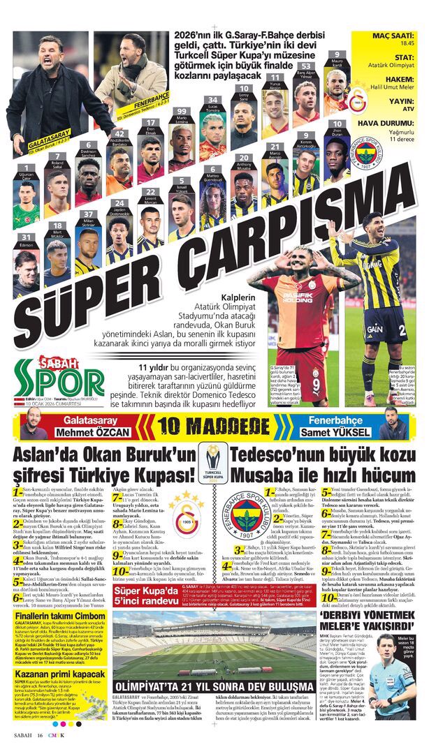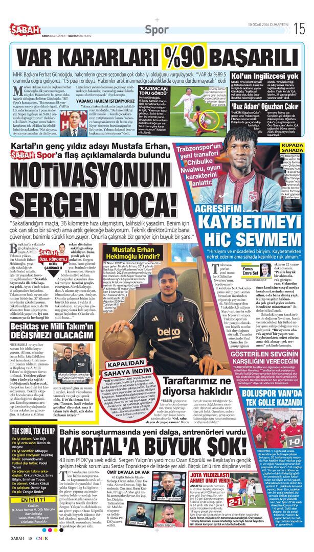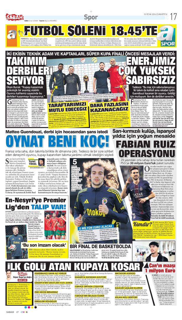 Gazetelerde günün spor sayfaları