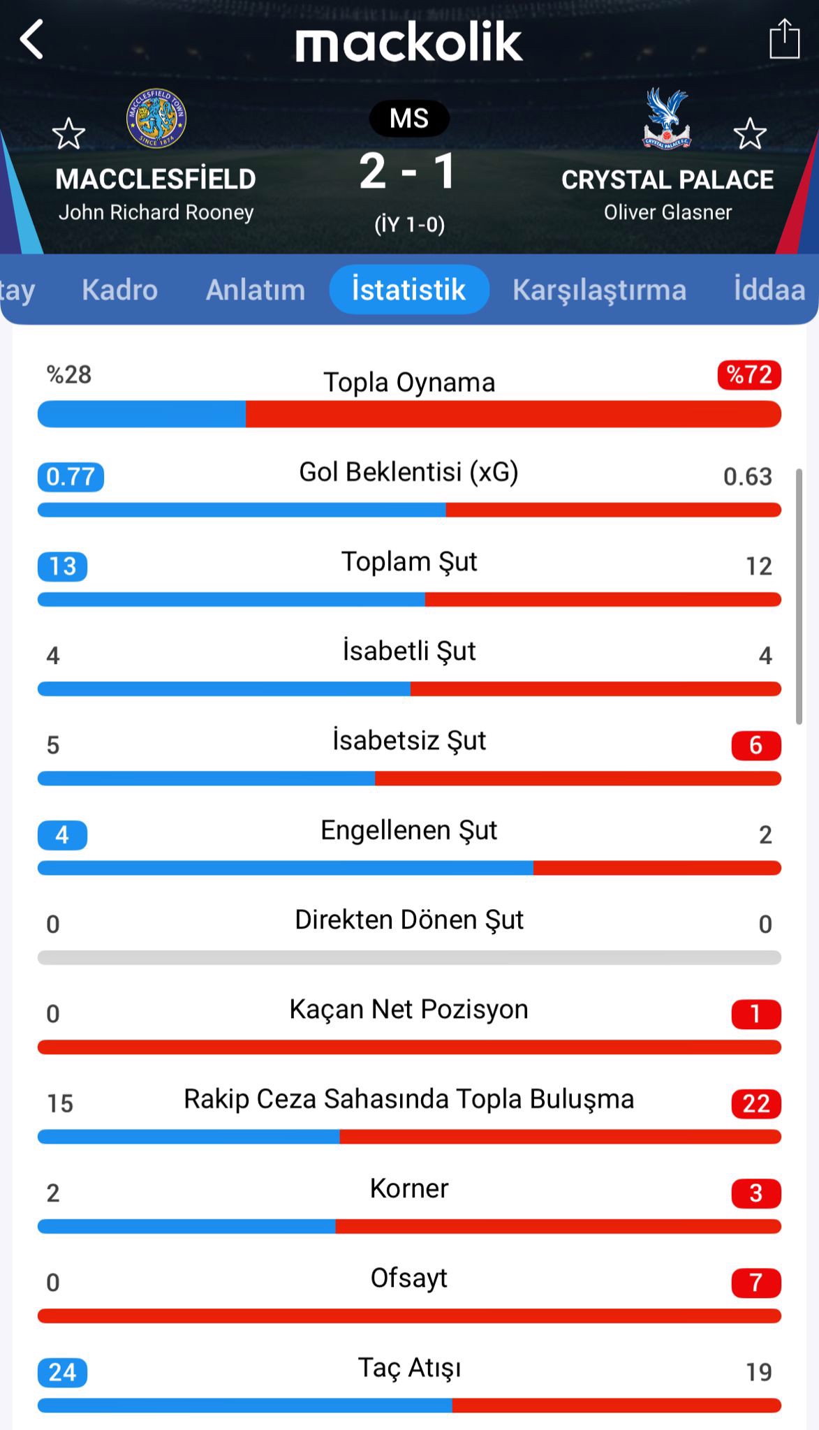 Karşılaşmanın geri kalanında daha fazla gol sesi çıkmadı ve maç 2-1 Macclesfield galibiyeti ile sonuçlandı.