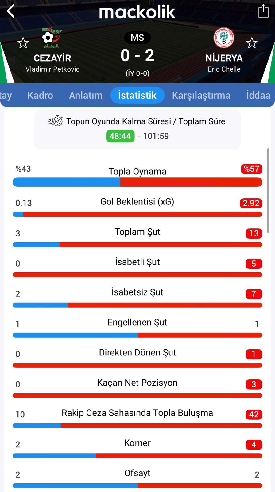 Maçtan istatistikler