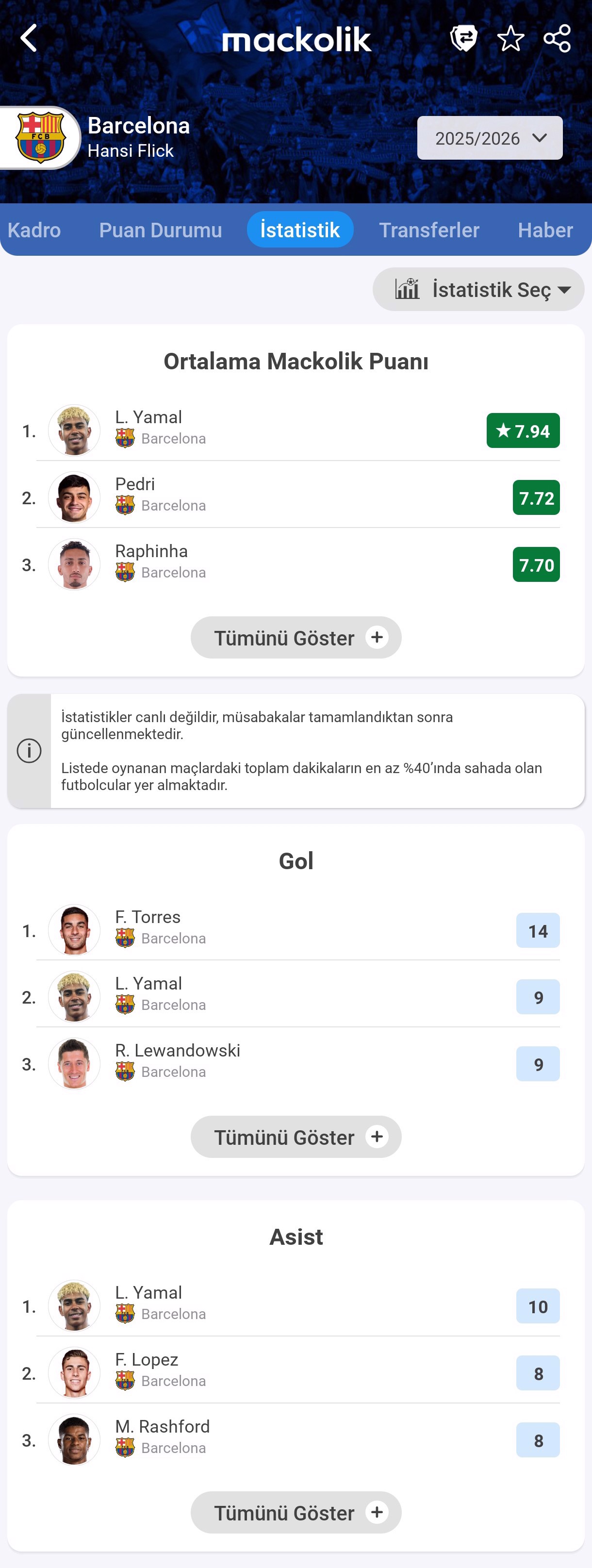 Barcelona'nın hücum üretkenliği büyük ölçüde set oyunları ve sürekli baskı üzerine kurulu. 373 şut ve %38 isabet oranı, bu yapının istikrarlı bir bitiriciliğe dönüştüğünü gösteriyor. 37 akan oyun golü, yerleşik savunmalara karşı çözüm üretme becerisinin altını çizerken, rakip ceza sahasında 709 kez topla buluşmaları, Barcelona'nın hücum sürekliliğini rakamsal olarak da doğruluyor. Raphinha'nın dönüşüyle ön hatta gelen enerji, Pedri'nin orta sahada oyunu yeniden kontrol etmesi ve kalede Joan Garcia'nın kritik anlarda yaptığı kurtarışlar, bu hücum gücünü daha da yukarı çekti.