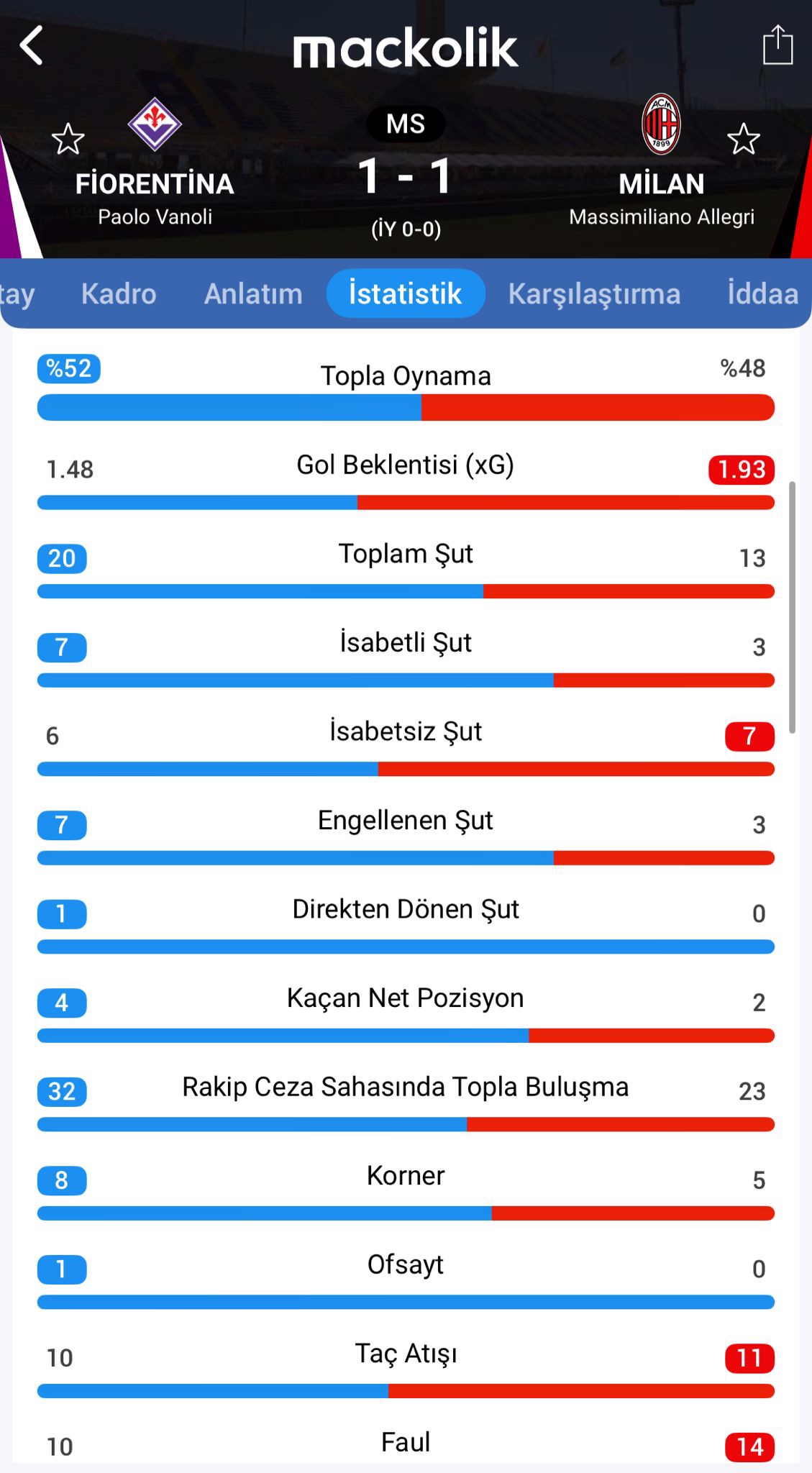 Karşılaşmanın kalan bölümünde skor değişmedi. Karşılaşma 1-1 beraberlikle sonuçlandı.