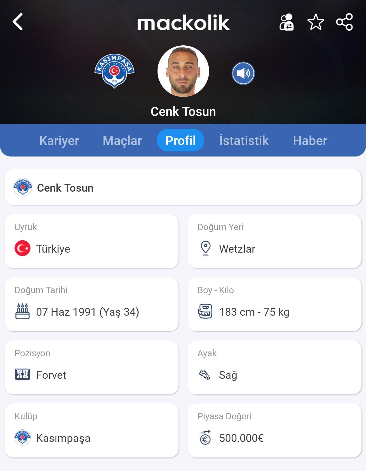 Süper Lig ekiplerinden Kasımpaşa, tecrübeli forvet Cenk Tosun'u kadrosuna kattı.