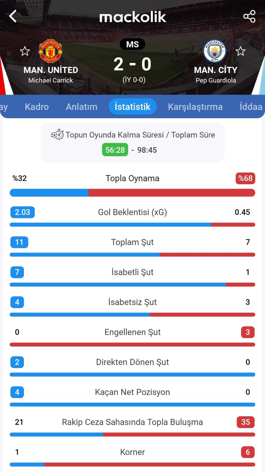 Diallo, 34. dakikada topu ağlarla buluştursa da ofsayt nedeniyle gol geçerli olmadı. Fernandes, 41. dakikada fileleri havalandırırken ise Portekizli futbolcu için ofsayt bayrağı kalktı.