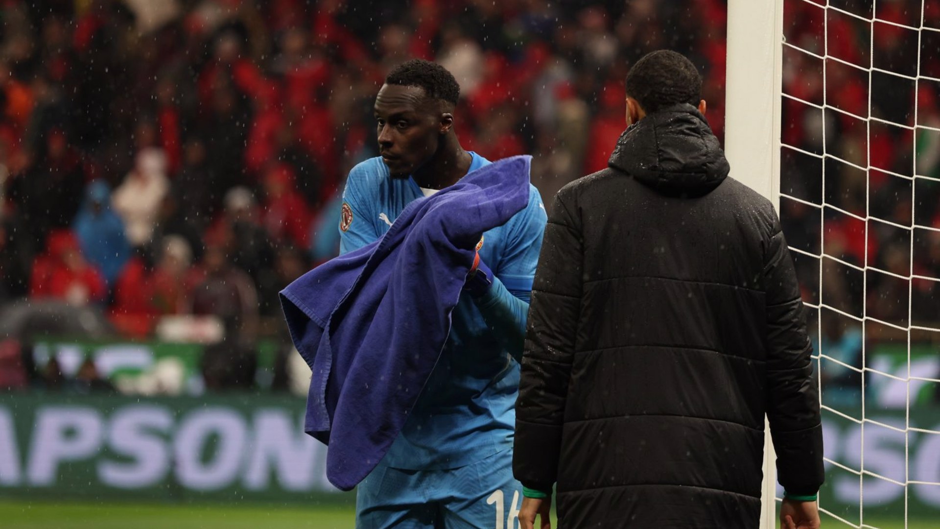 Senegal'in yedek kalecisi Yehvann Diouf, Eduard Mendy'nin eldivenlerini kuru tutmak için kullandığı havlusunu top toplayıcı çocuklardan korumaya çalıştı. Mendy'nin kale ağlarına koyduğu ve aşırı yağışlı hava nedeniyle sık sık eldivenlerini sildiği havlu, Faslı top toplayıcılar tarafından birkaç kez alındı. Bu anlarda Diouf, çocuklarla kıyasıya bir mücadeleye girişti. Hatta Diouf havluyu korumak için yerlerde sürüklendi.