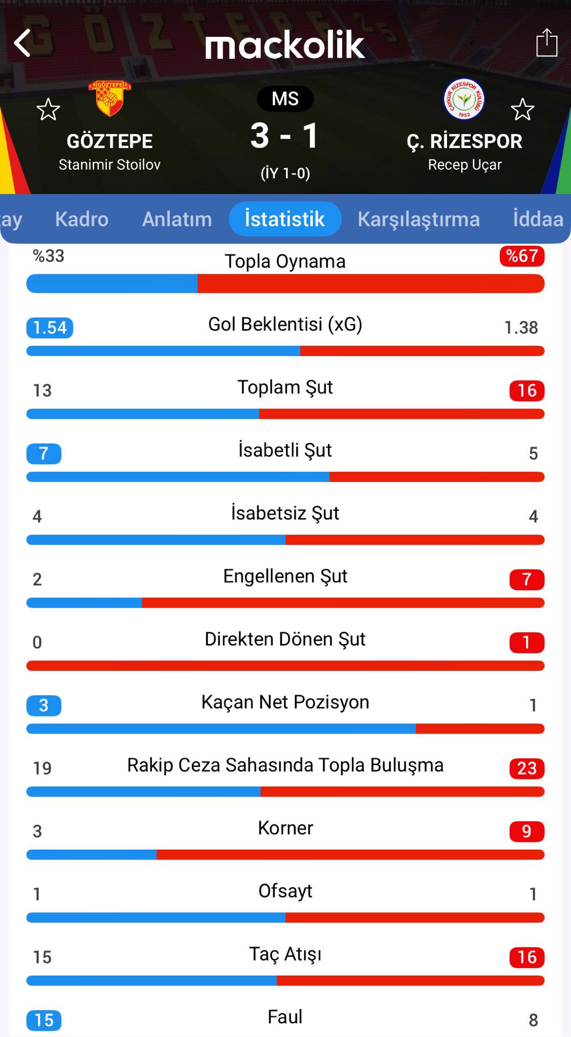 Süper Lig'in 18. haftasında Göztepe, sahasında Rizespor'u konuk etti.