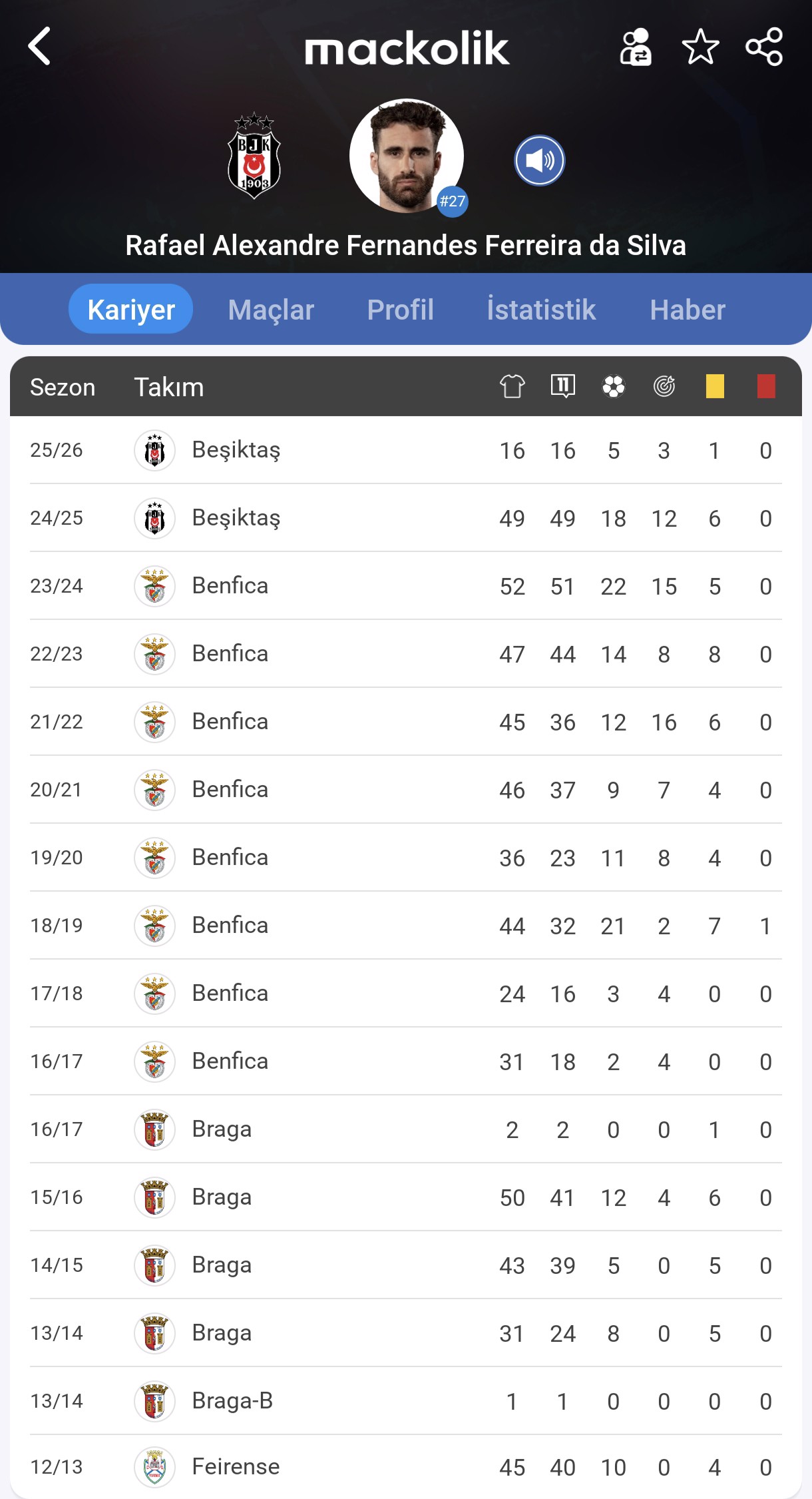 32 yaşındaki Portekizli, bu sezon Beşiktaş formasıyla 16 maça çıkıp 5 gol, 3 asist ile oynamıştı.