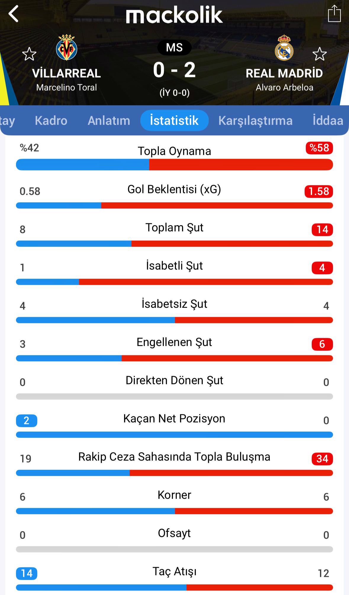 Maçtan İstatistikler