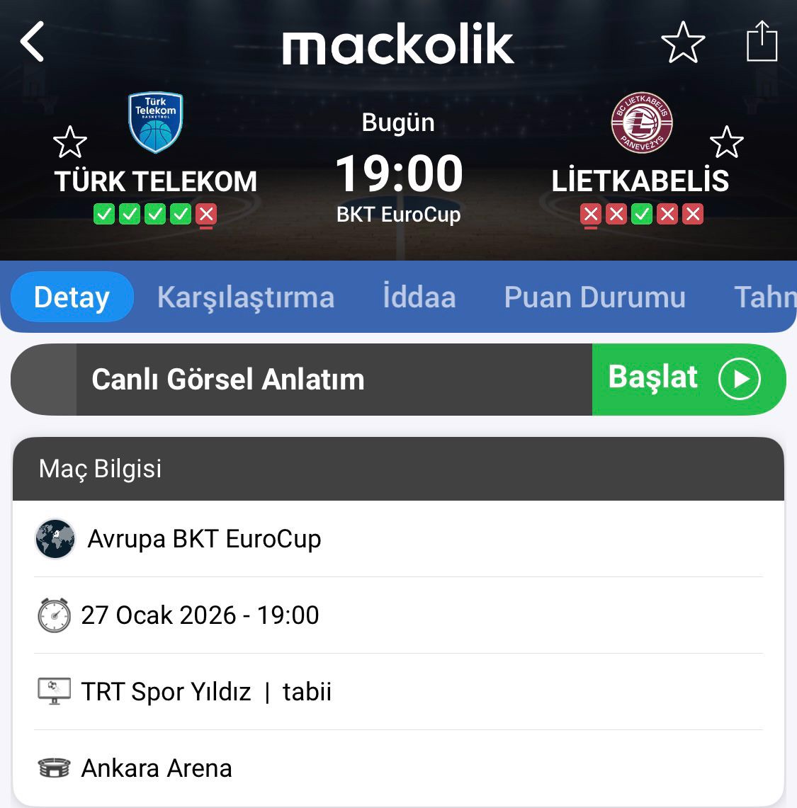 BKT EuroCup'ta temsilcilerimizden Türk Telekom, saat 19:00'da evinde Litvanya ekiplerinden Lietkabelis'i ağırlayacak.